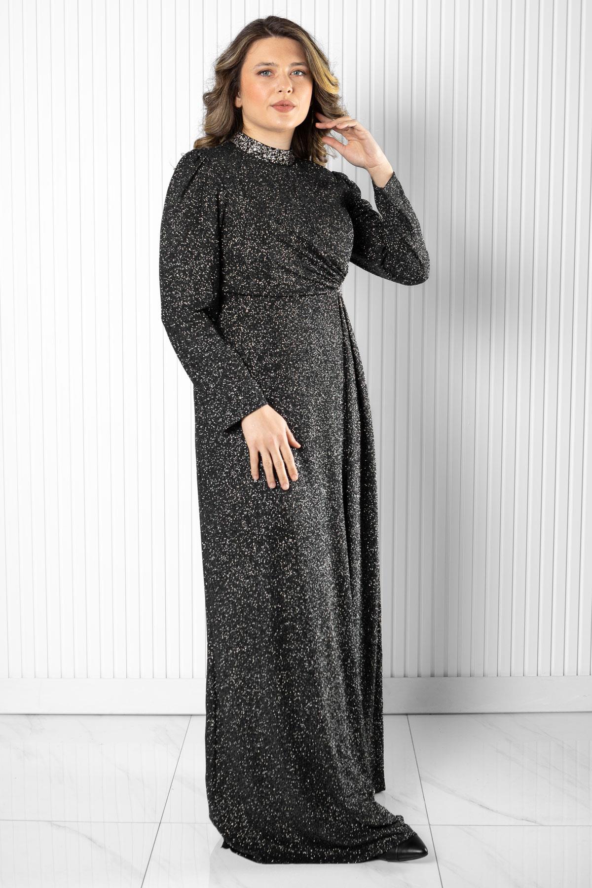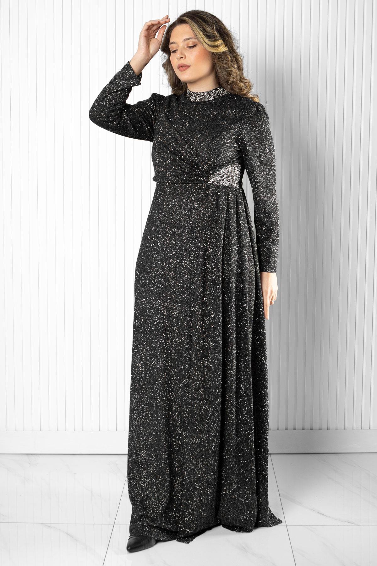Taş Baskı Detay Simli Abiye Gümüş MDA2523 (MDA2523-GÜMÜŞ)