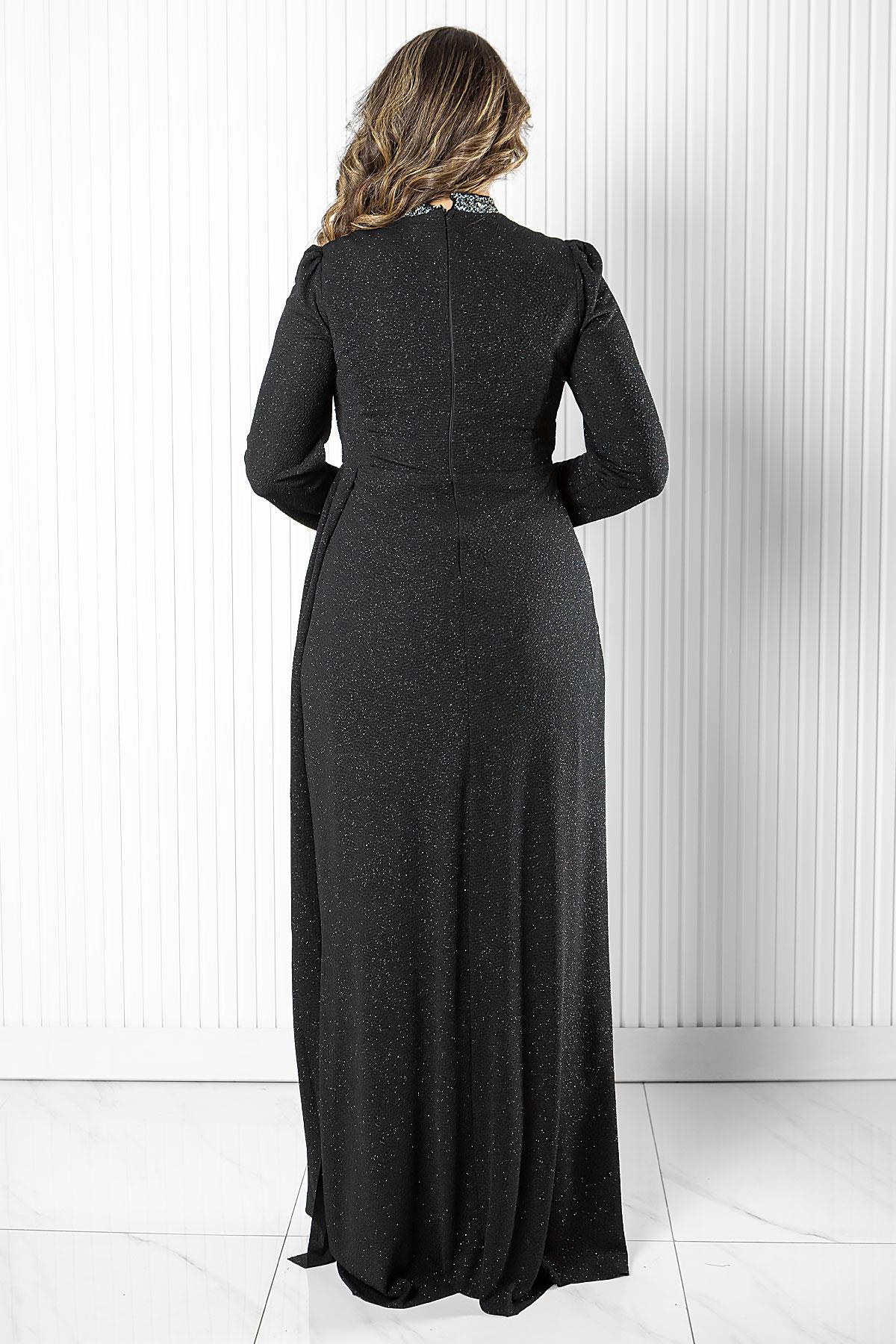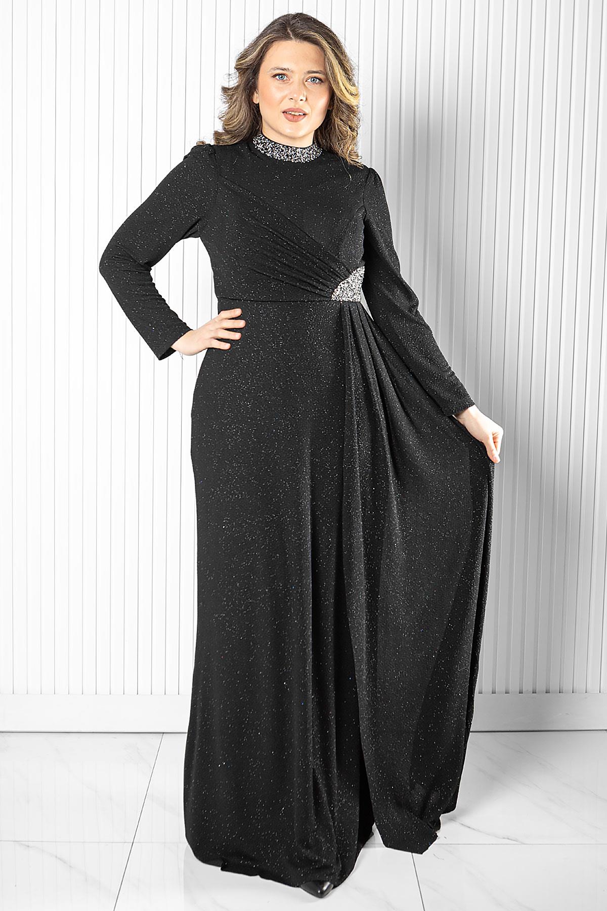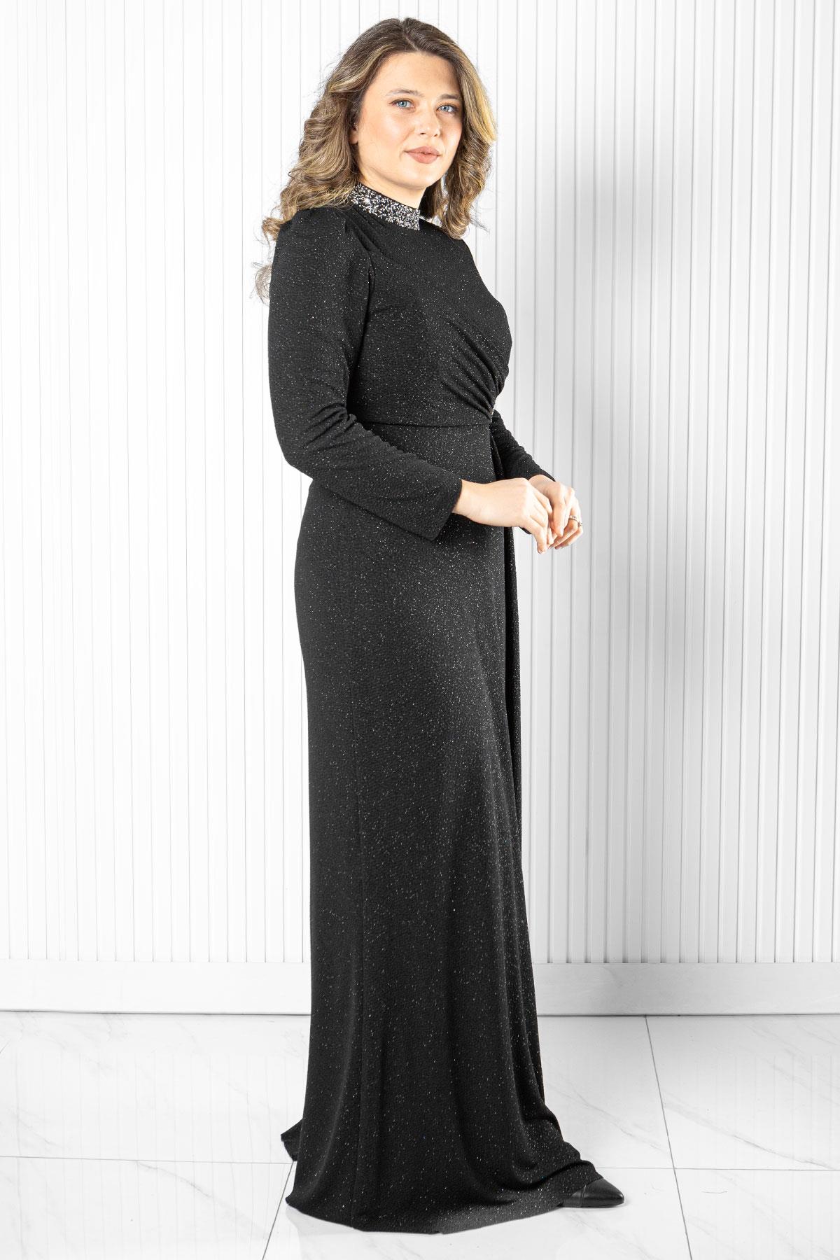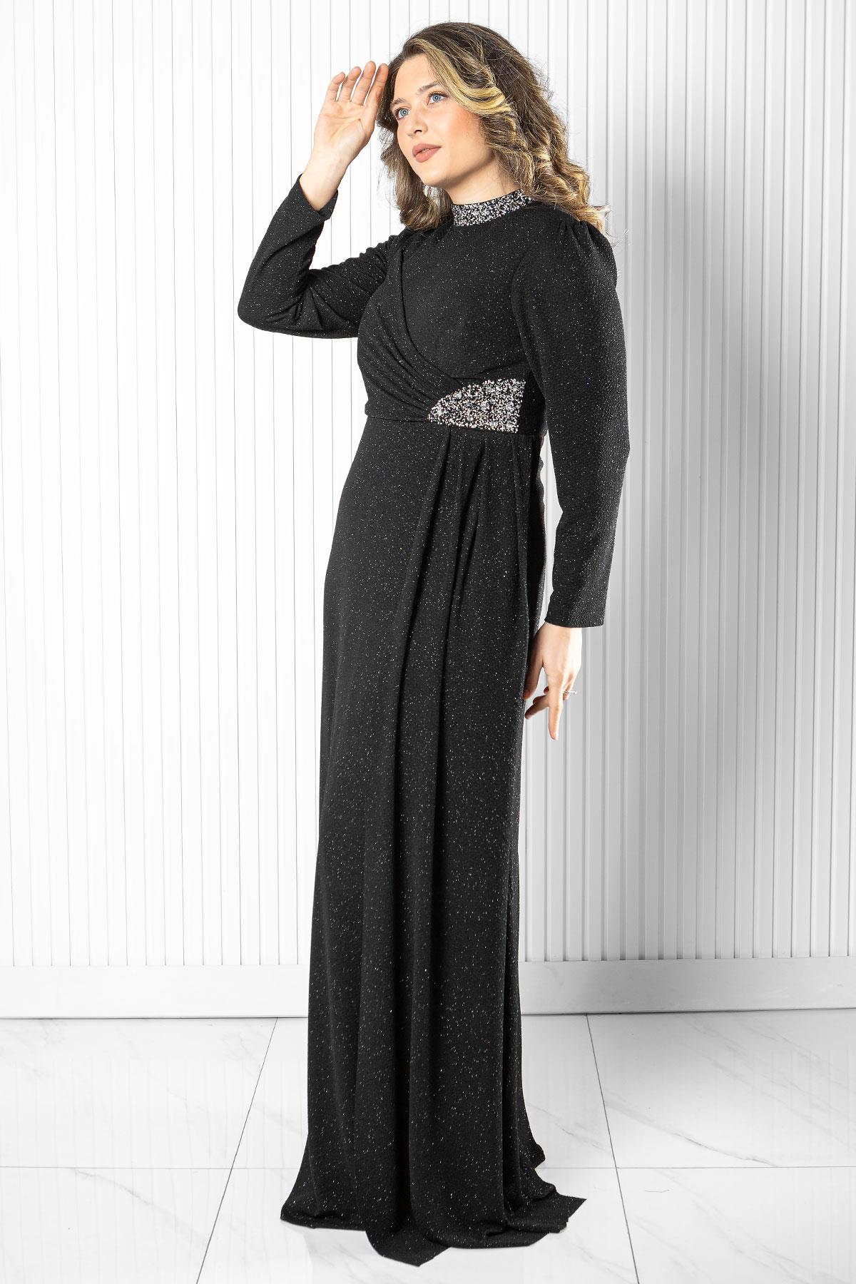 Taş Baskı Detay Simli Abiye siyah MDA2523 (MDA2523-SİYAH)