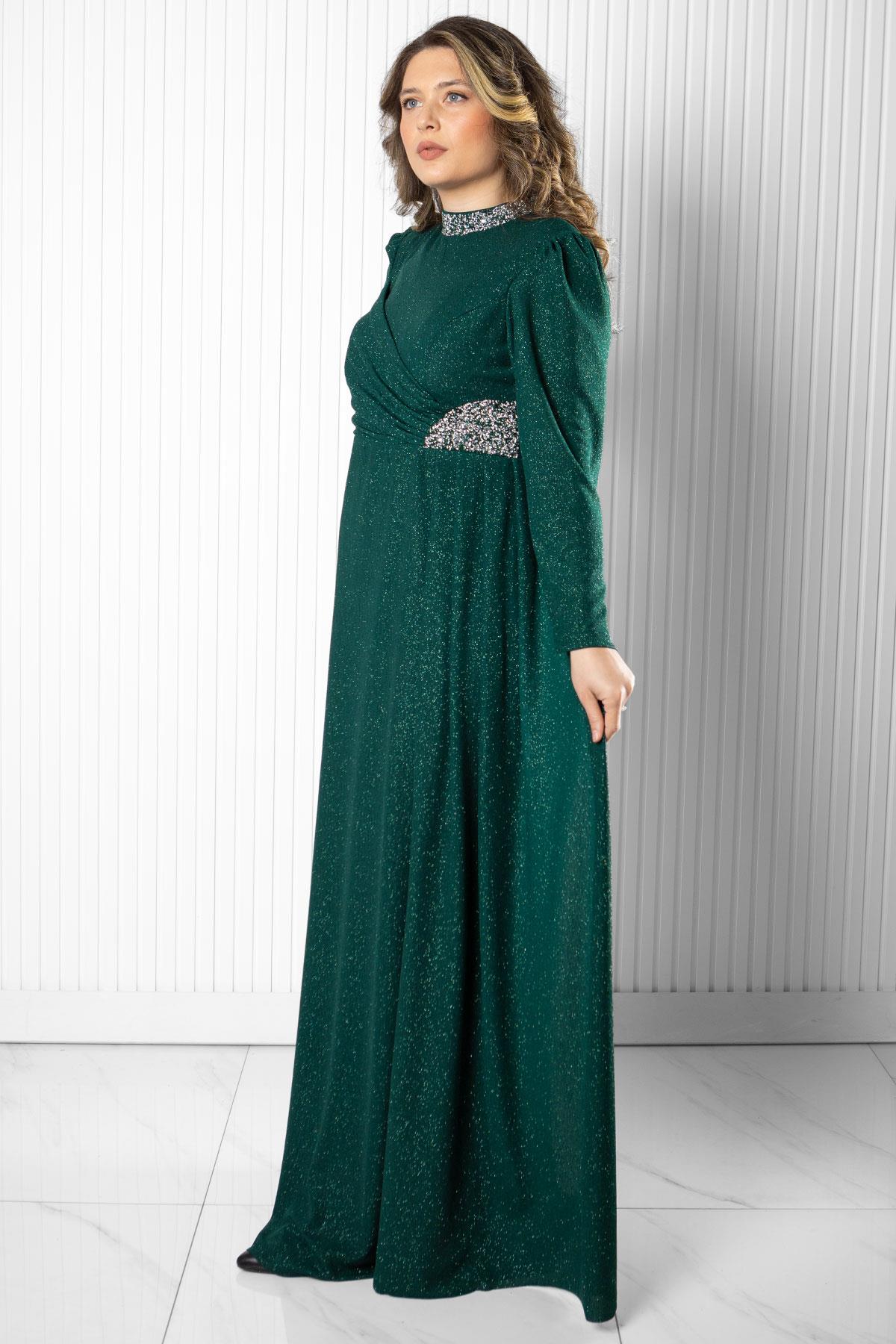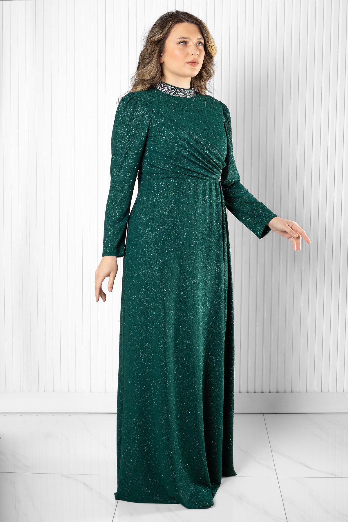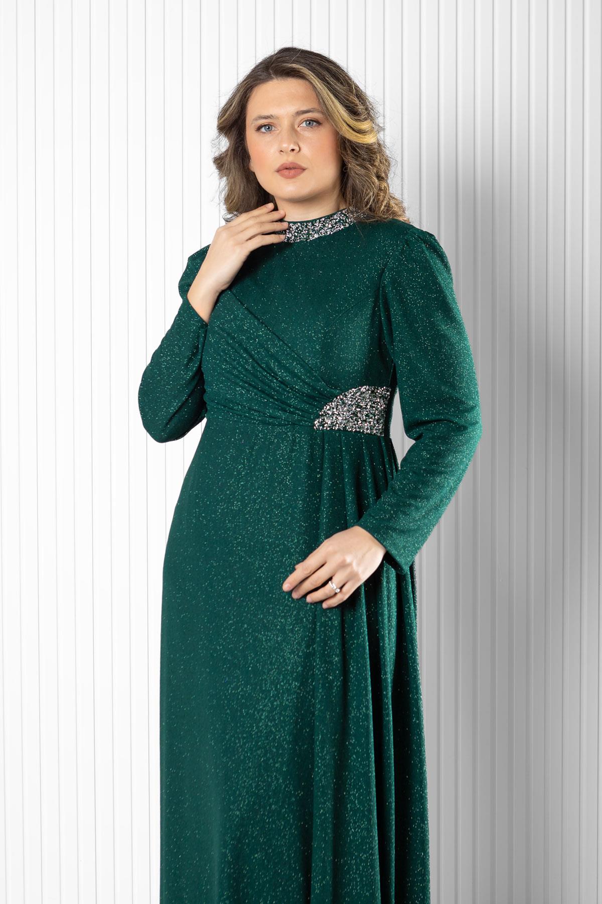 Taş Baskı Detay Simli Abiye Yeşil MDA2523 (MDA2523-YEŞİL)