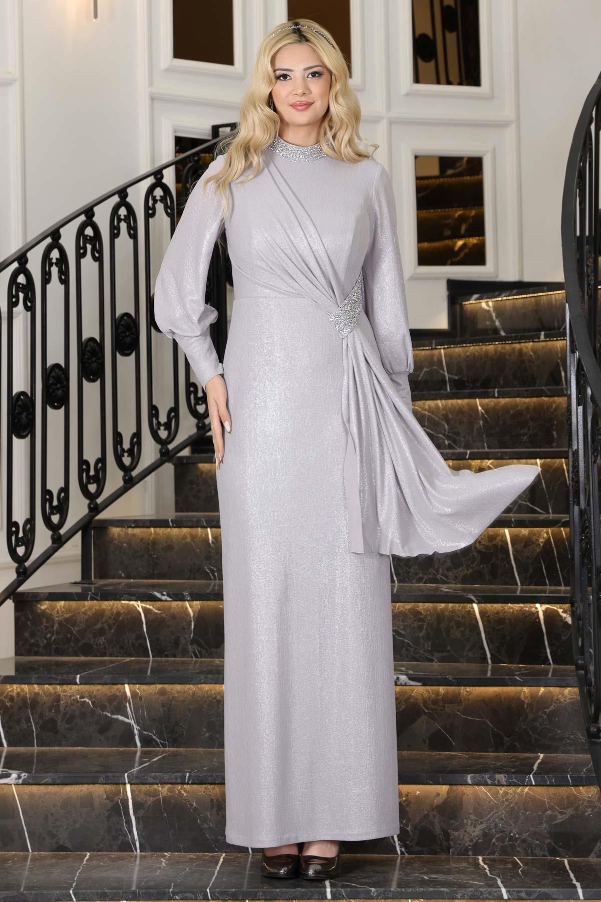 Ürün Kodu: ELB74 Kumaş Özelliği: Şifon- Simli Kumaş