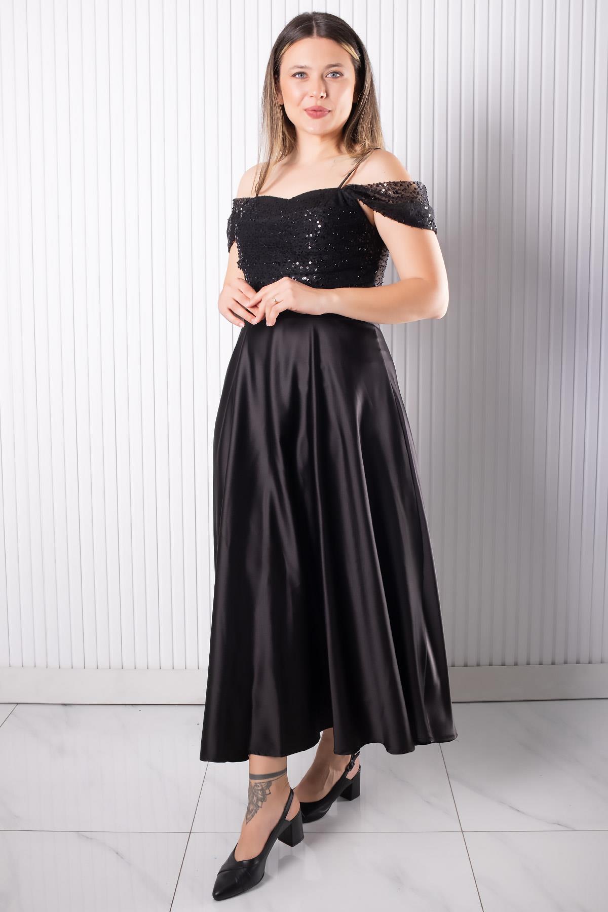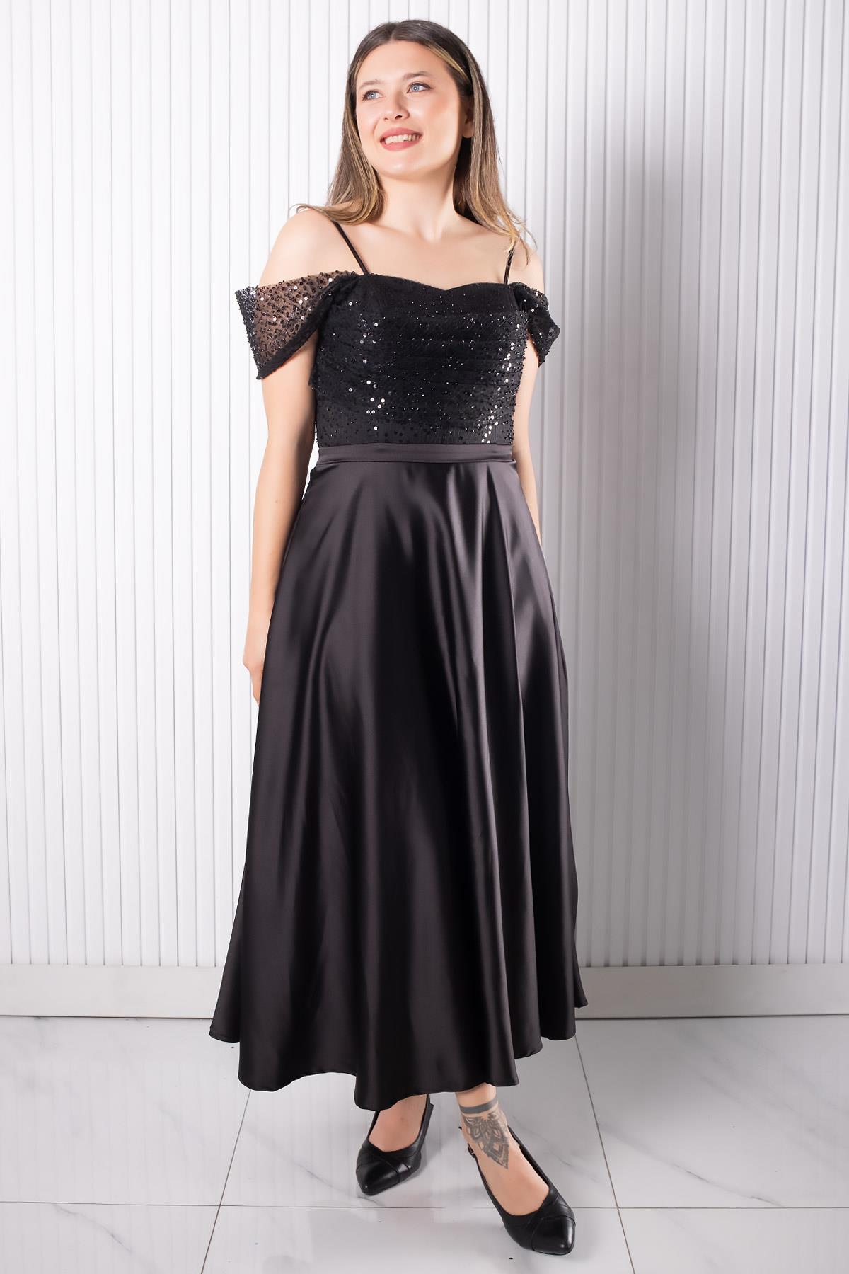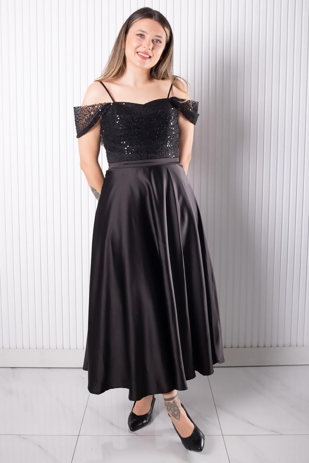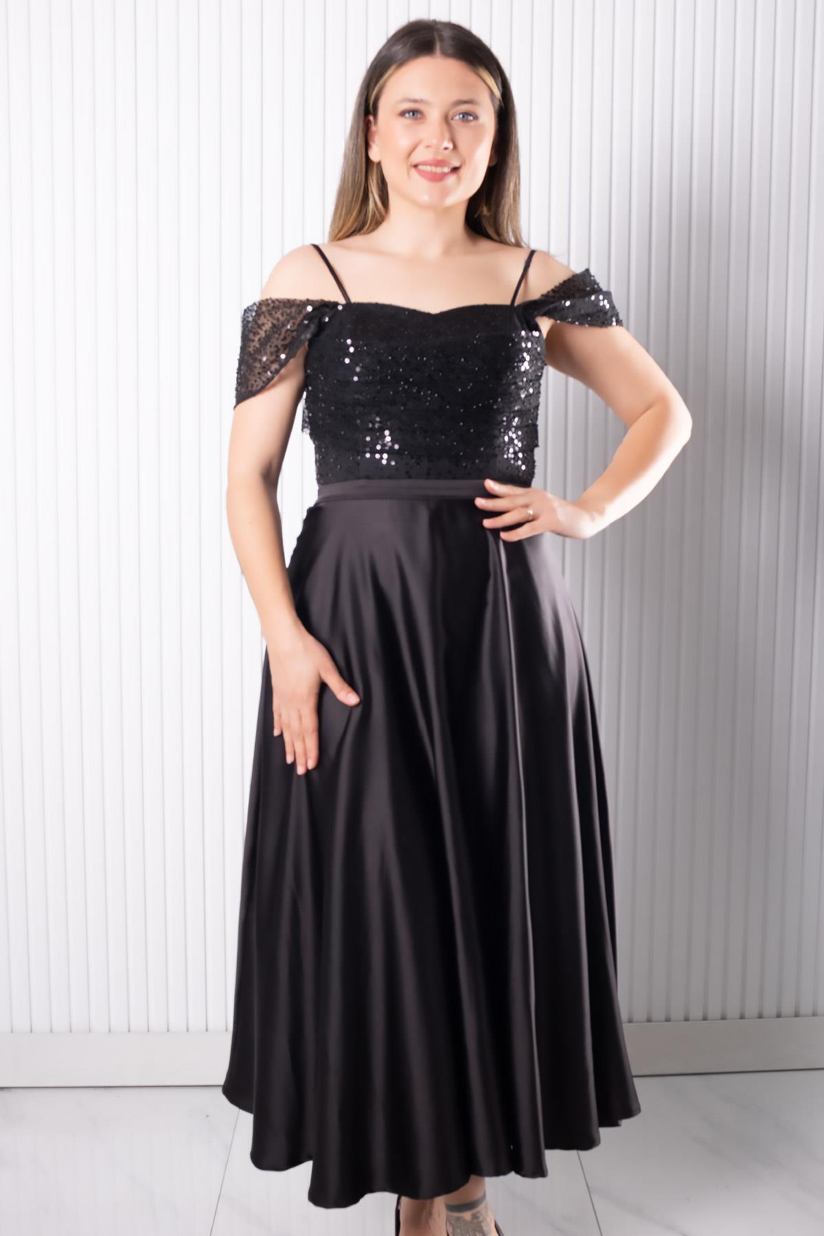 Asklı Pul Payetli Saten Abiye Elbise Siyah MDV386 (MDV386-SİYAH)