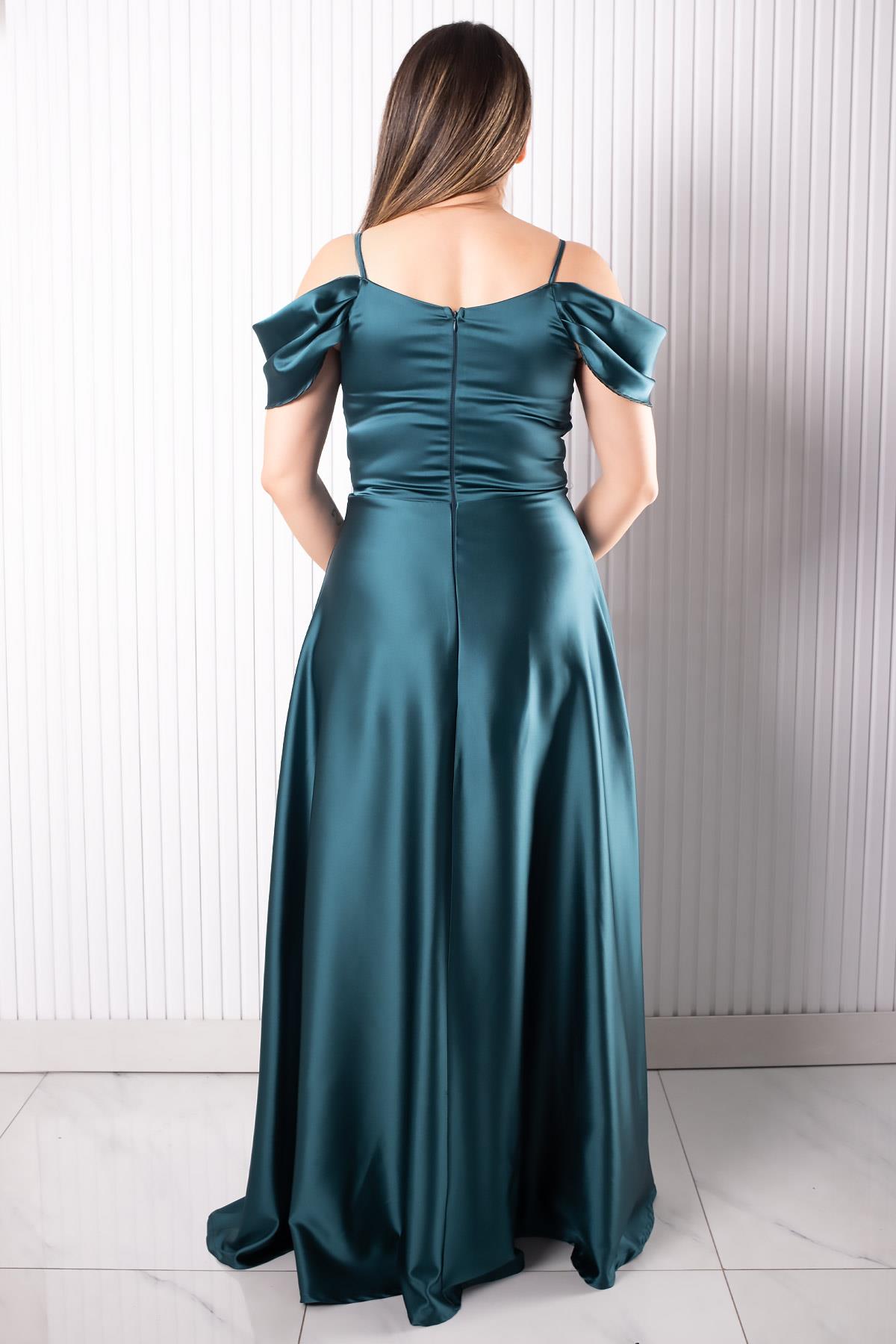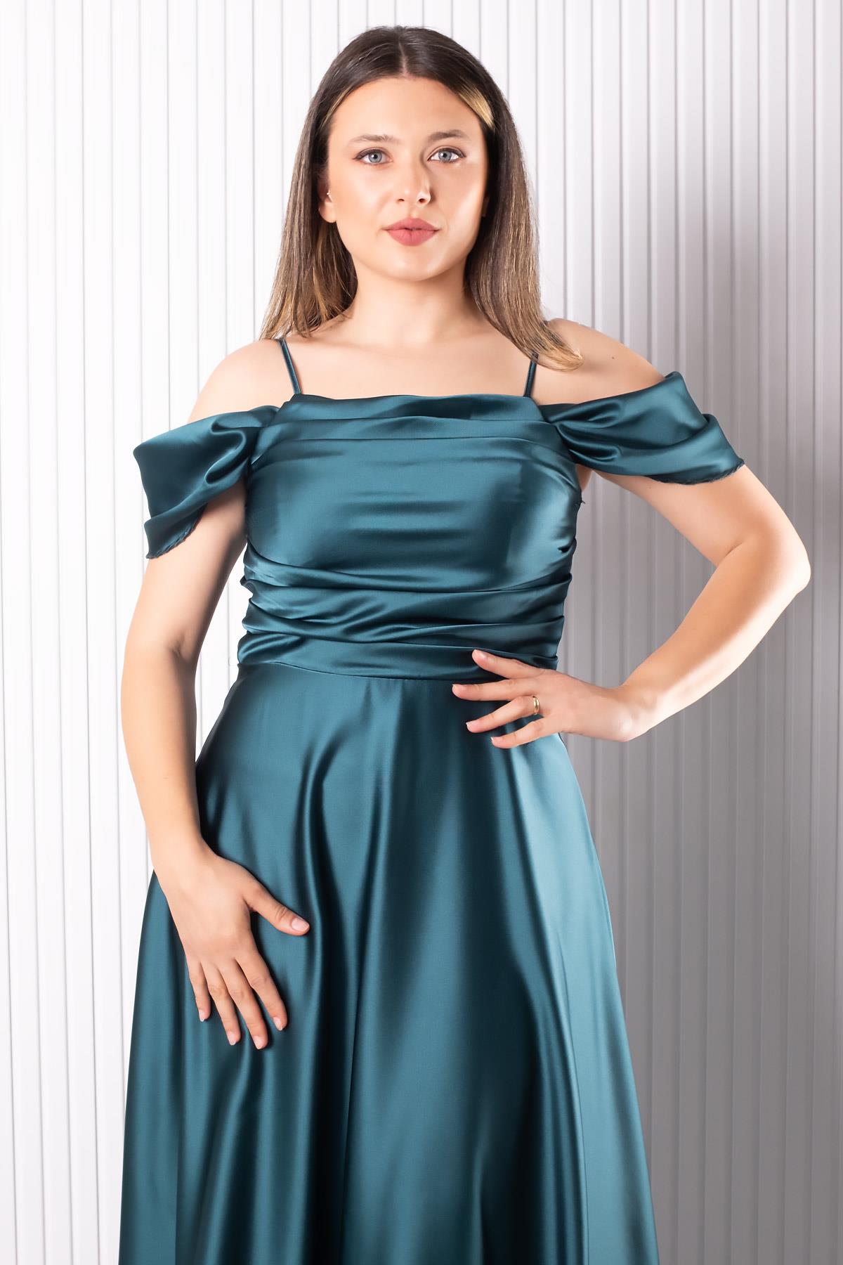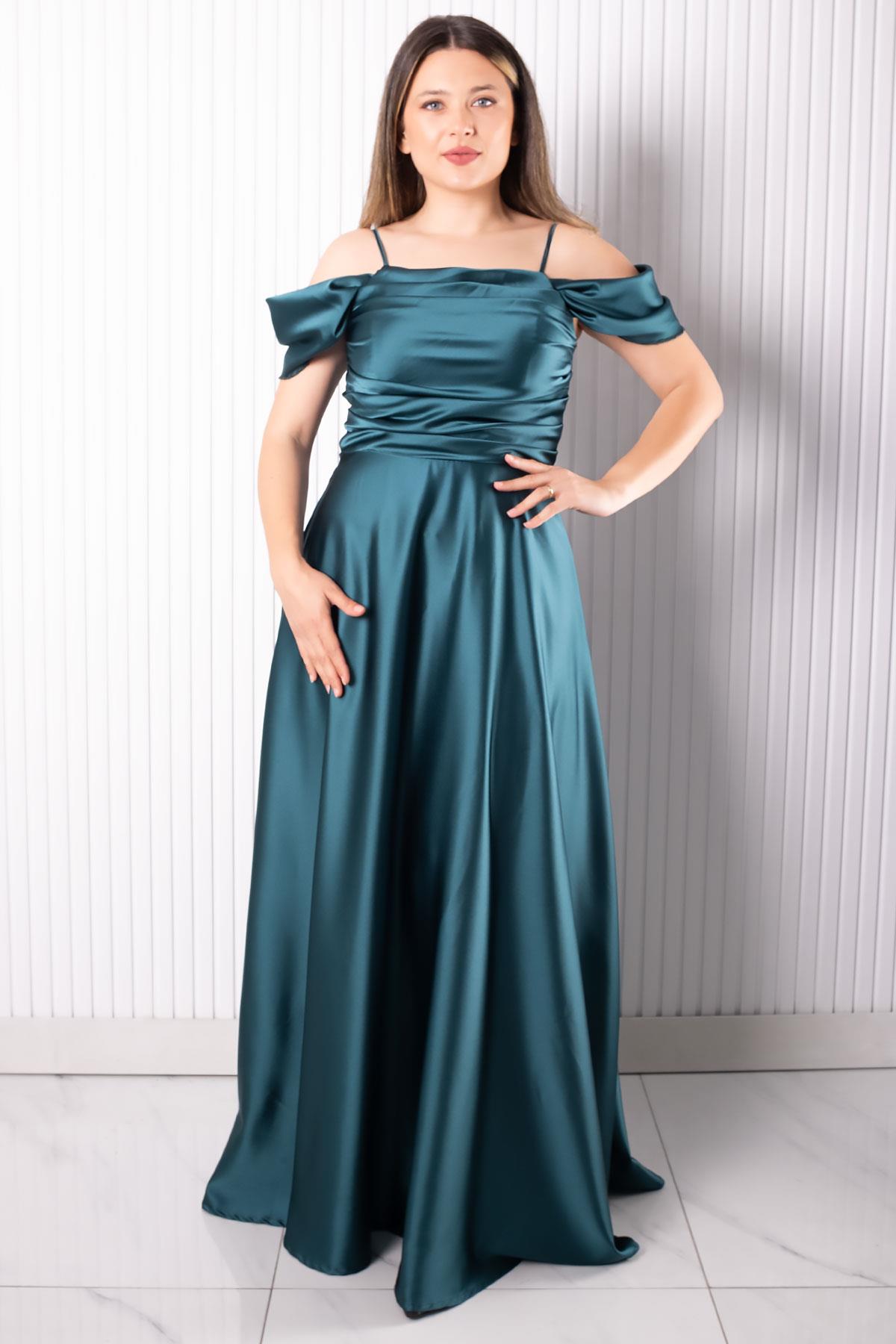 Askılı Saten Abiye Elbise Petrol MDV388 (MDV388-PETROL)