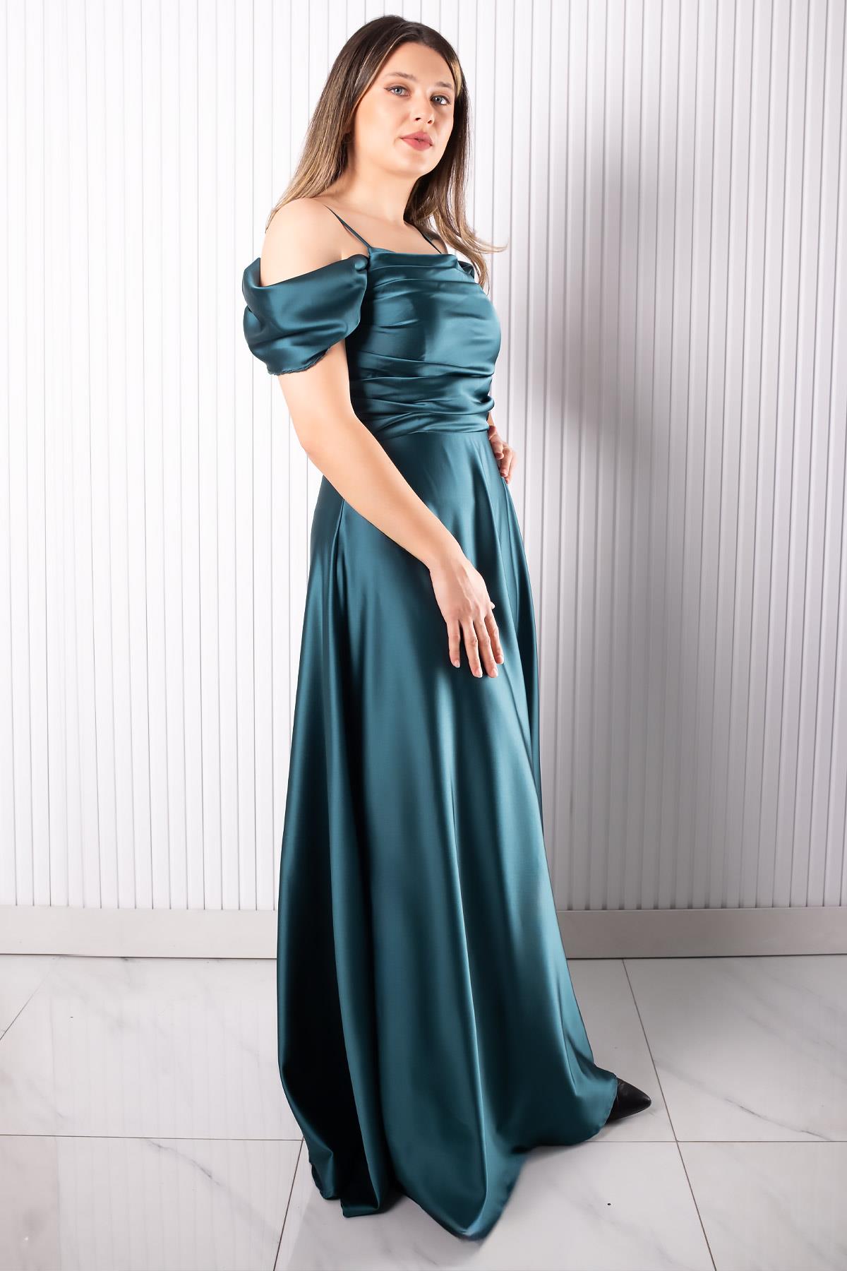 Askılı Saten Abiye Elbise Petrol MDV388