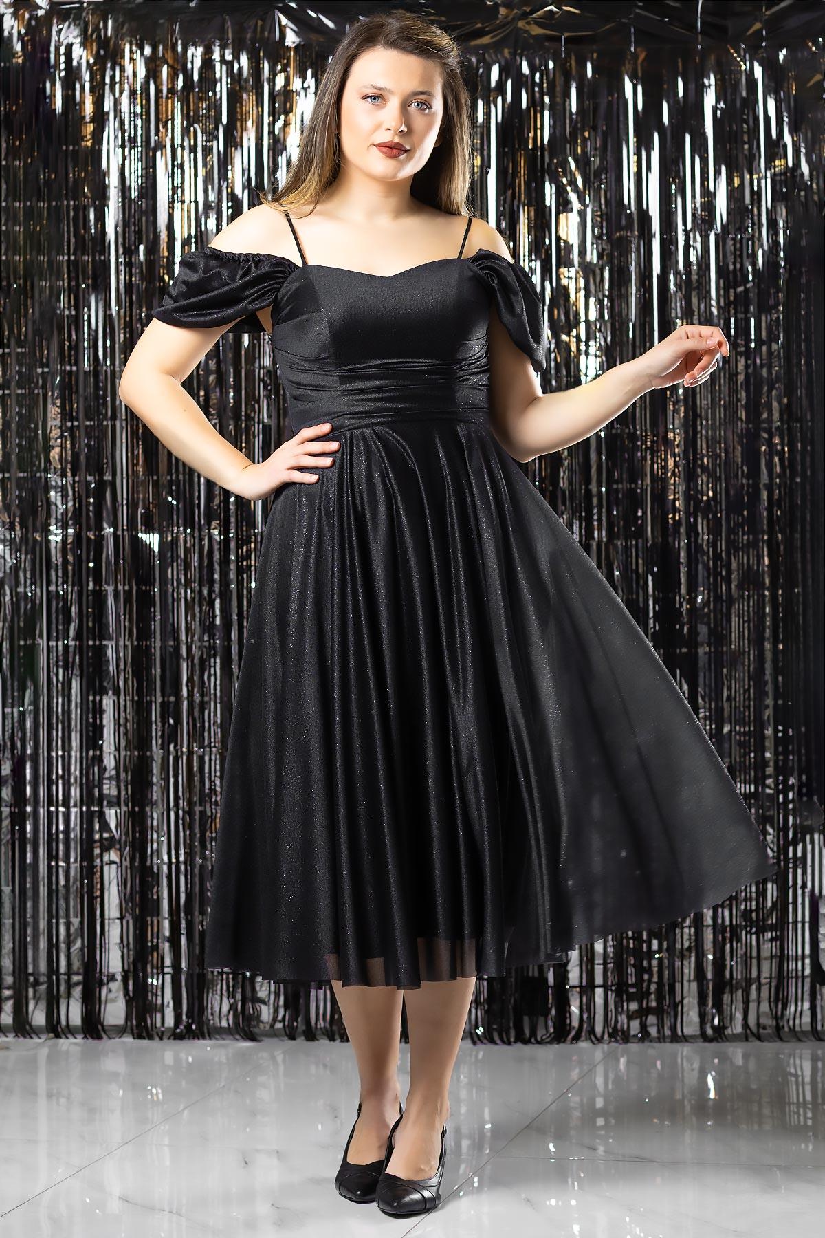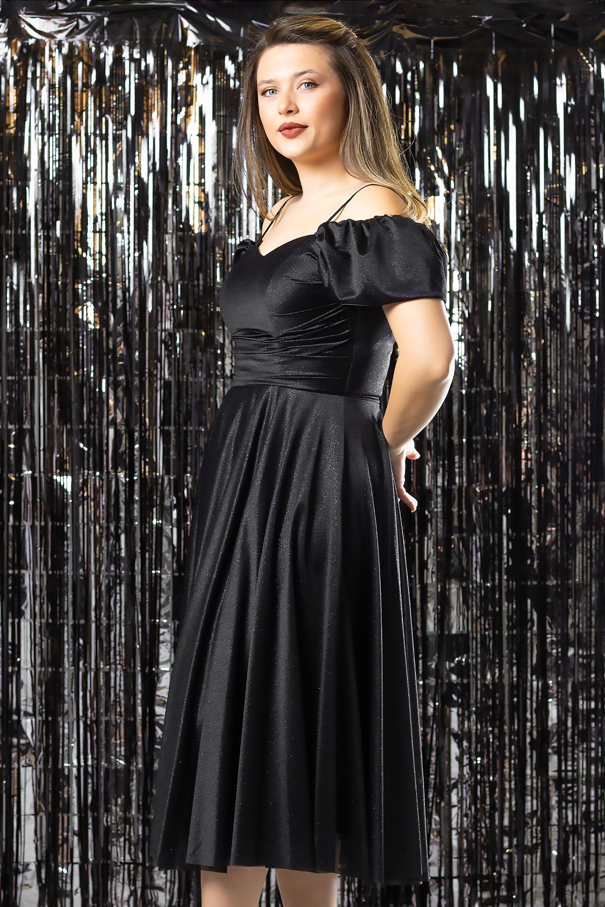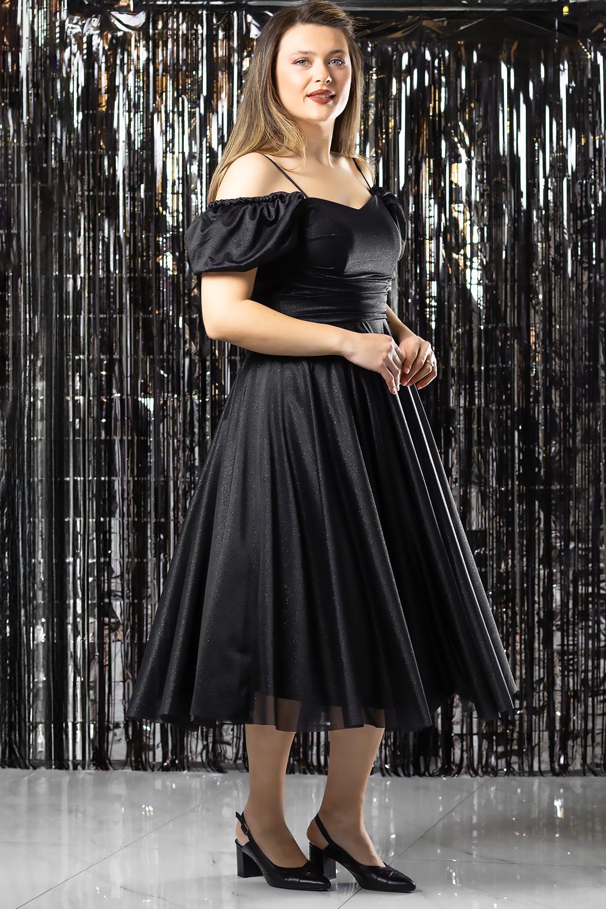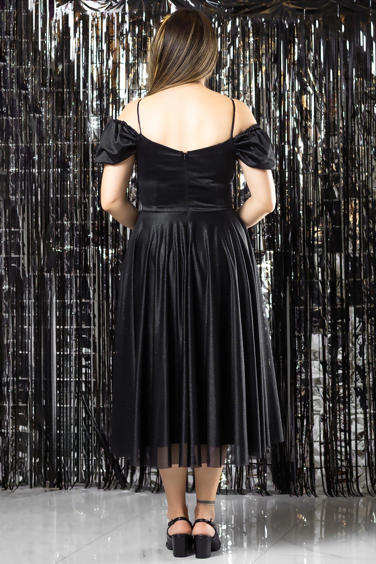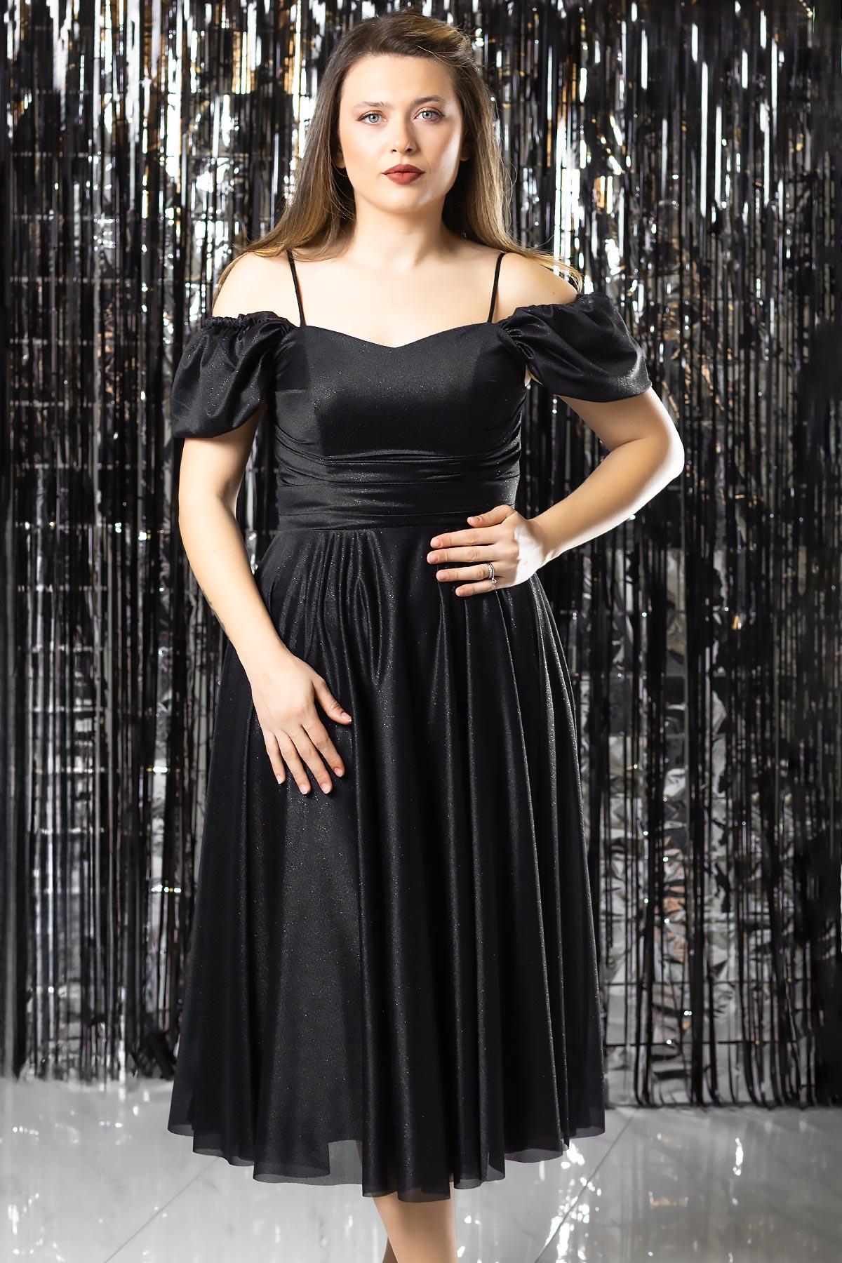 Askılı Simli Abiye Elbise Siyah MDV376 (MDV376-SİYAH)