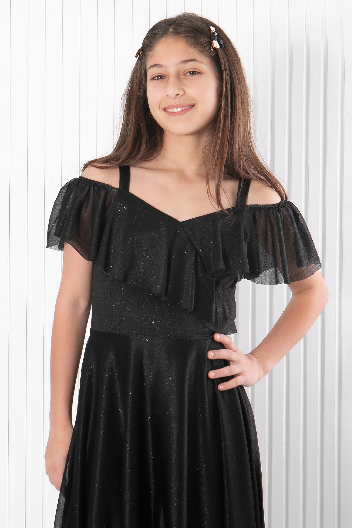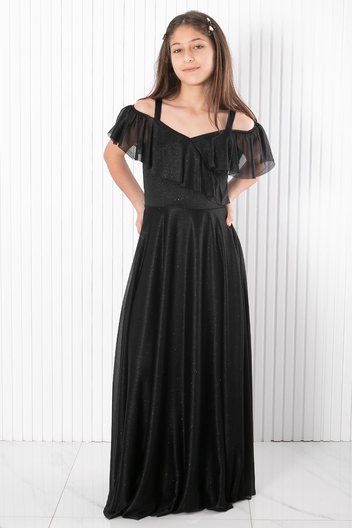 Askılı Simli Abiye Elbise Siyah MDV938 (MDV938-SİYAH)