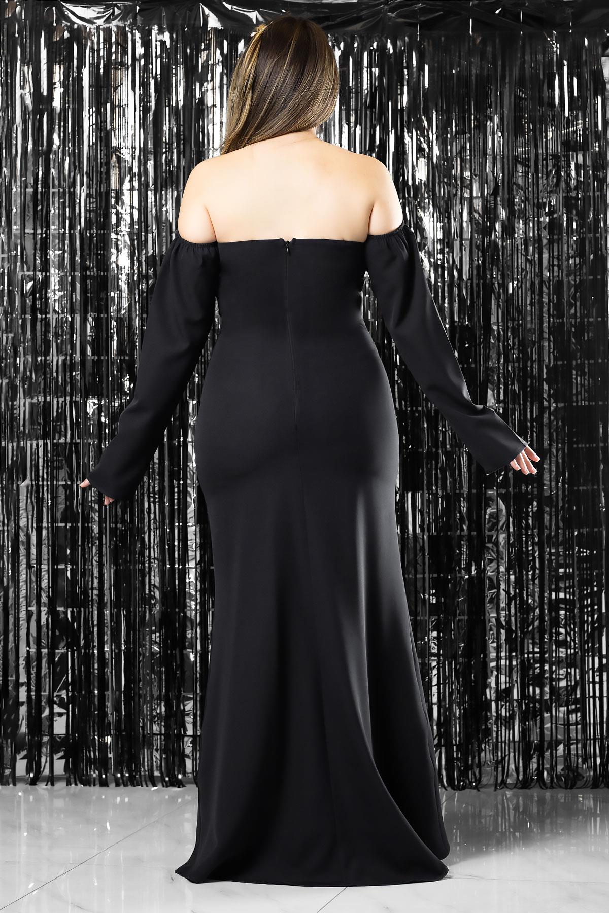Schwarzes Abendkleid mit detailreichen Ärmeln Schwarz MDV378