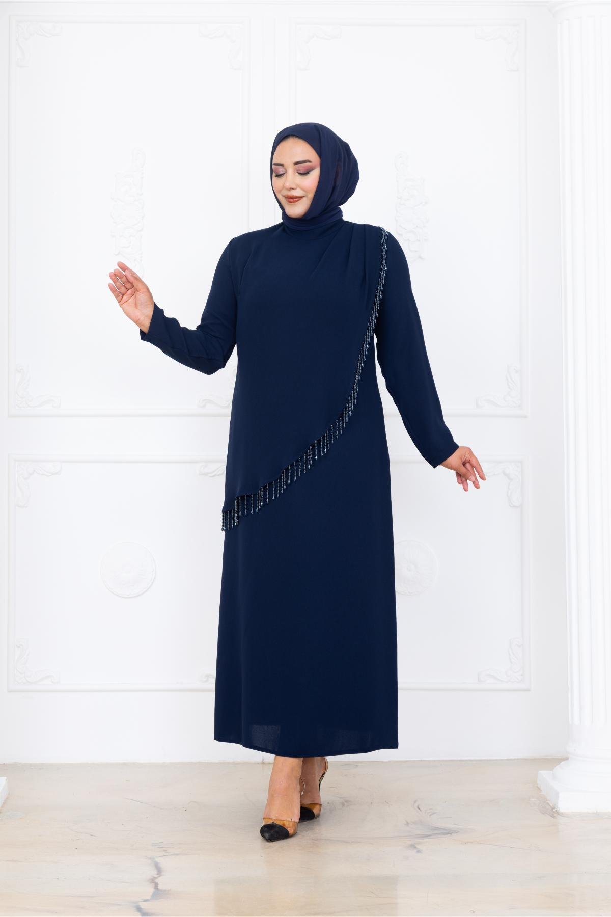 Melek Tesettür Abiye AMH1084 (AMH1084-LACİVERT)