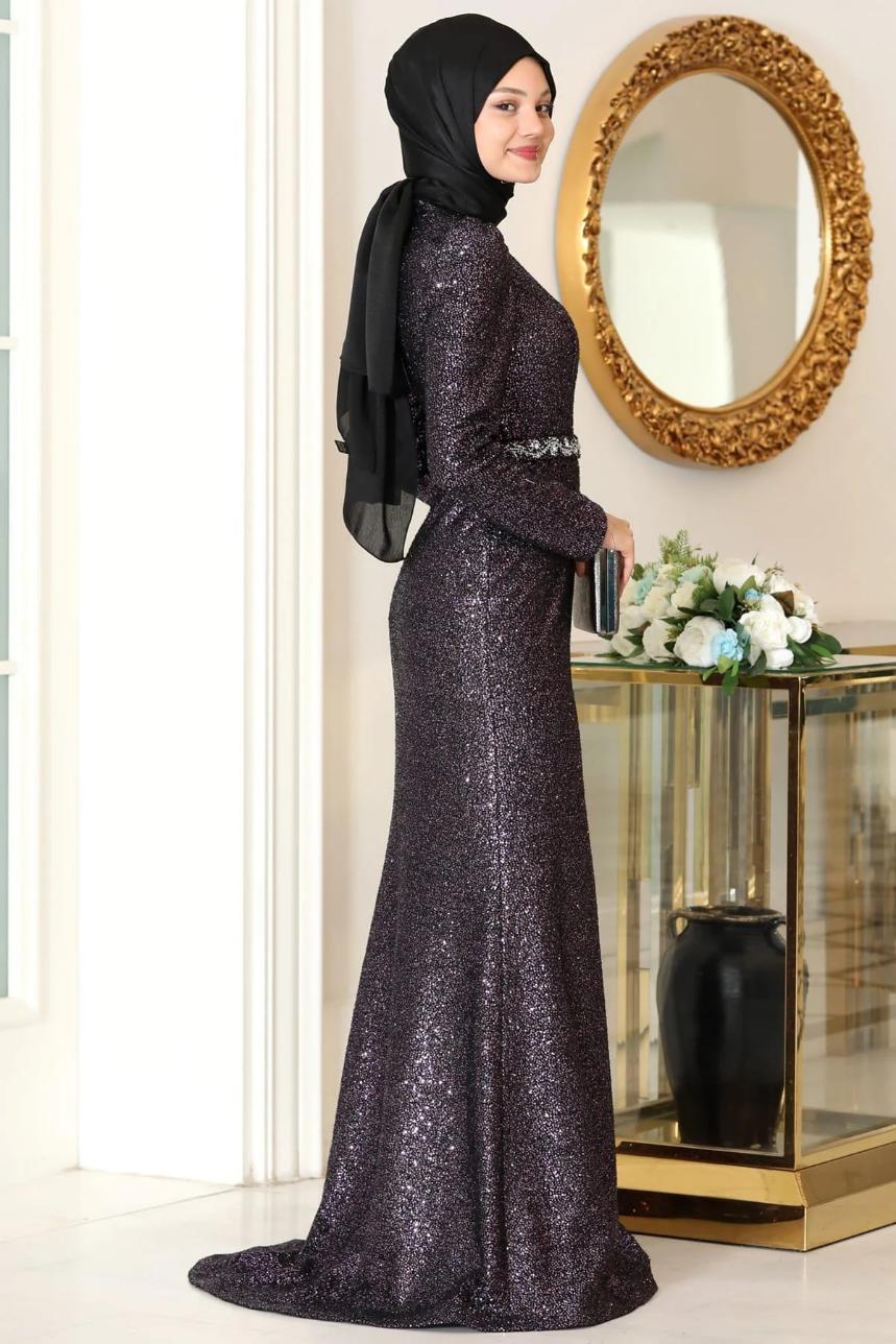 Silbriges Abendkleid Pflaume SN82 (SN82-MÜRDÜM)