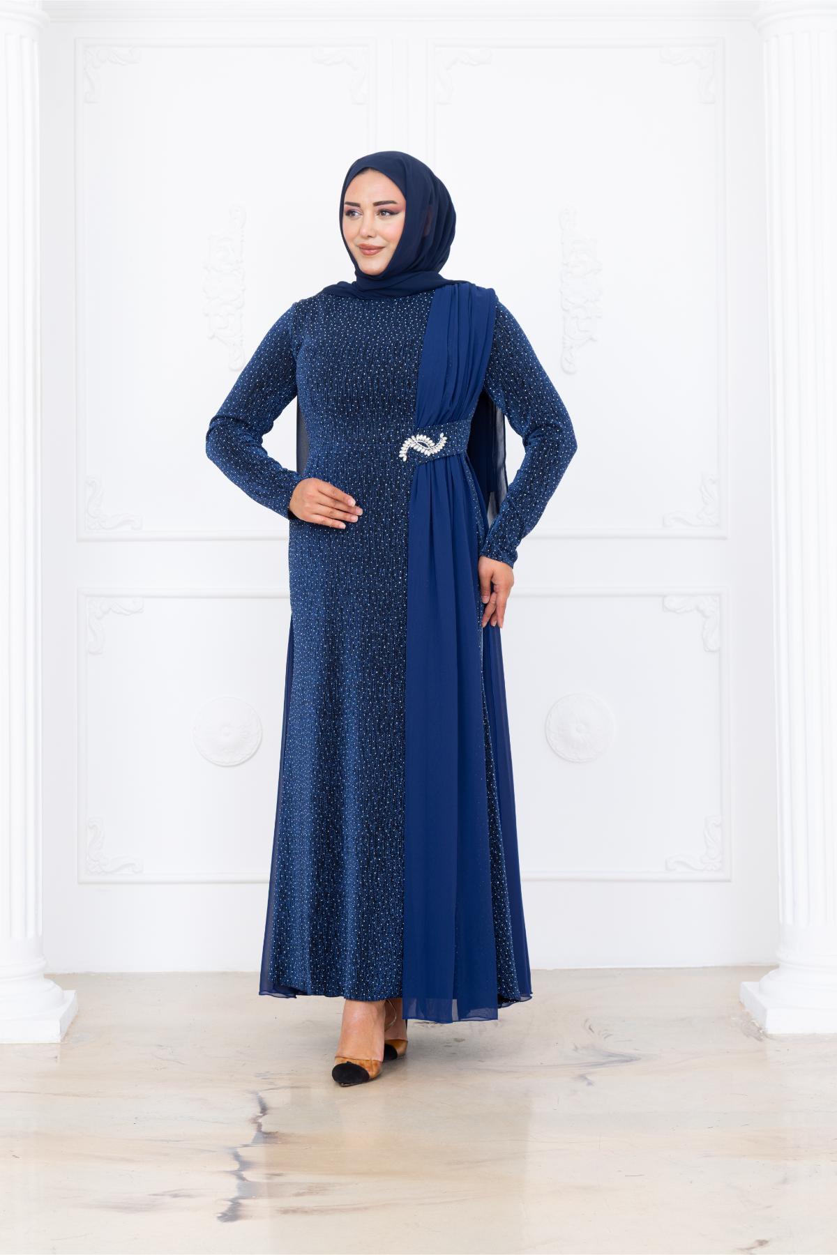 Nil Tesettür Abiye (AMH1096-SAKS)