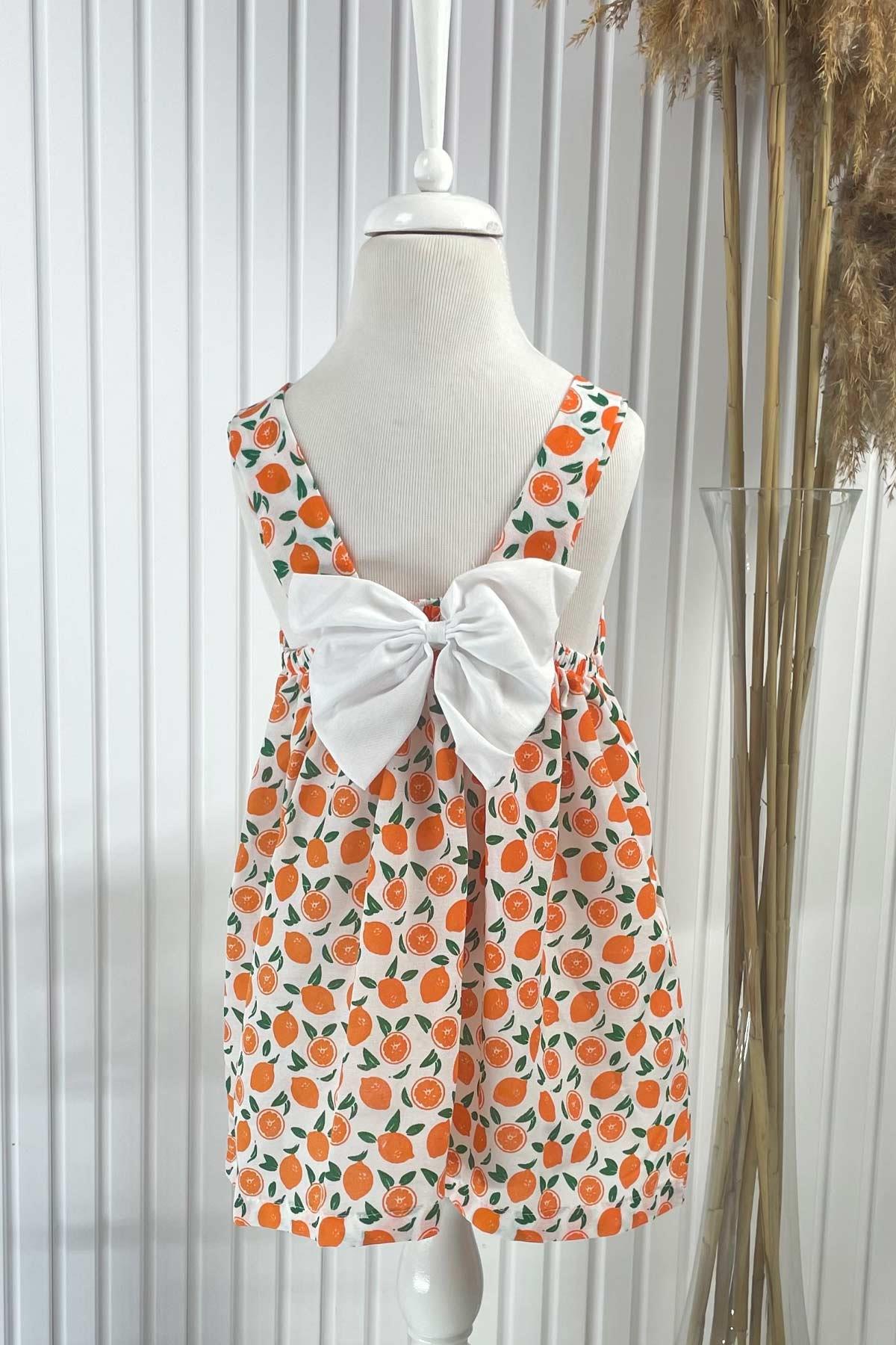 Gemustertes Kleid mit Hut Orange MDVK122