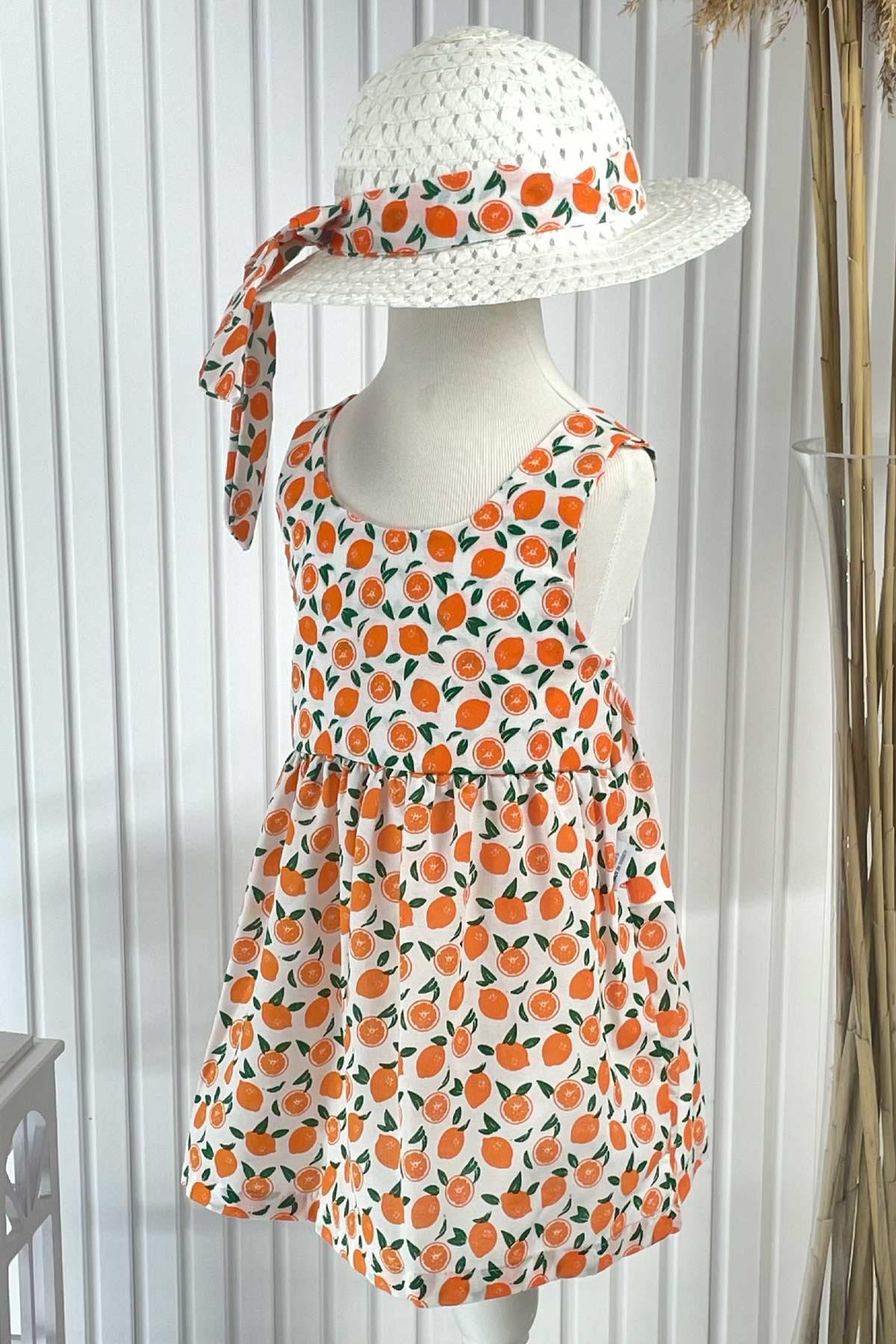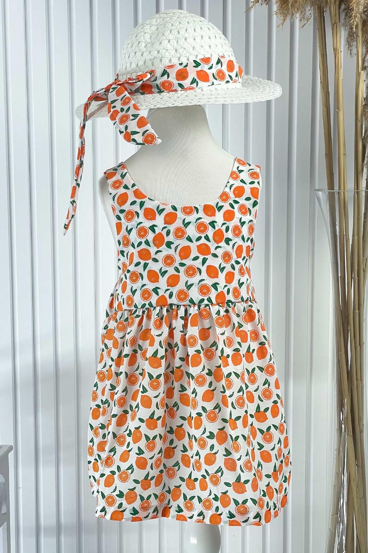 Gemustertes Kleid mit Hut Orange MDVK122 (MDVK122-TURUNCU)