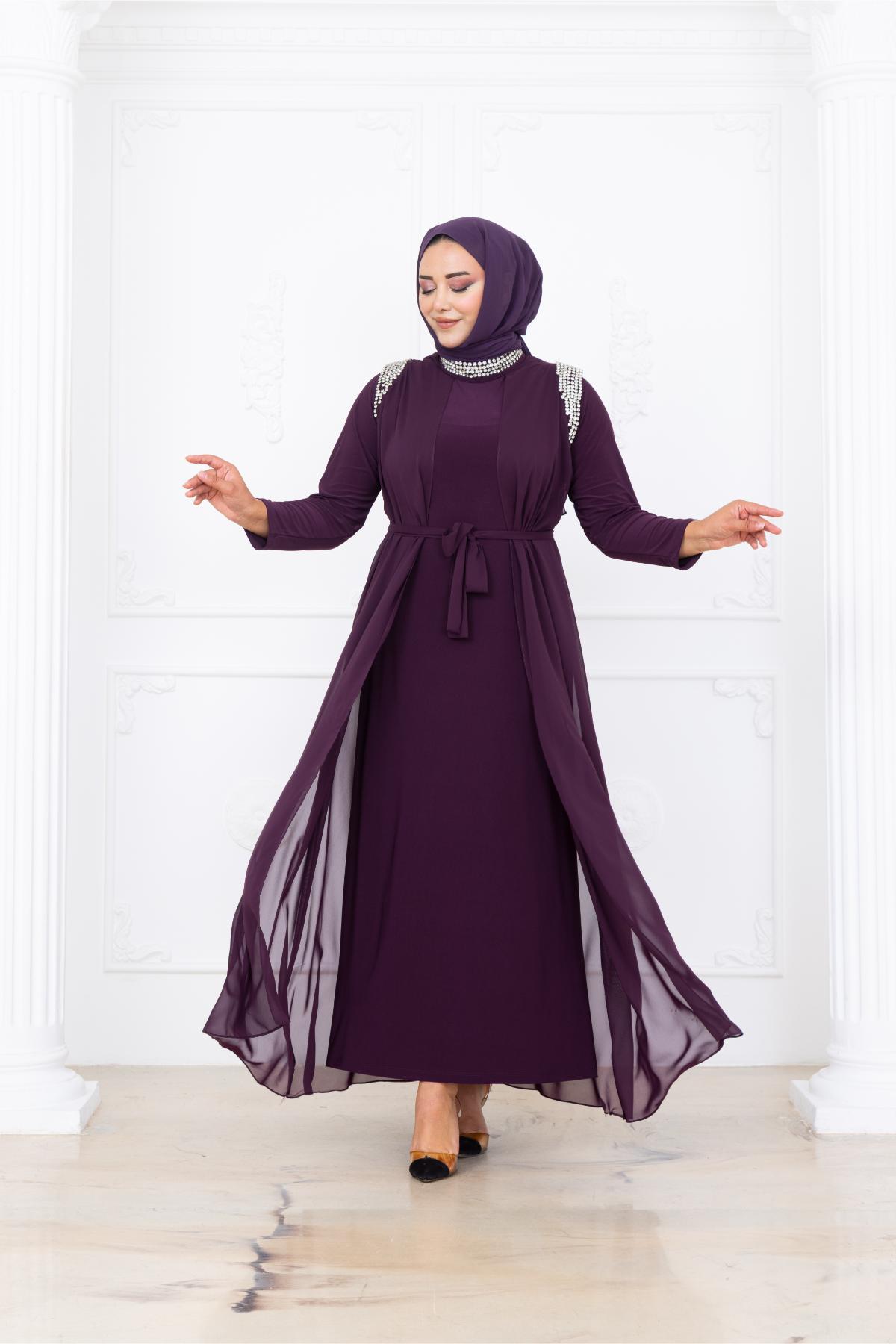 Zambak Şifon İncili Tesettür Abiye (AMH1088-MÜRDÜM)