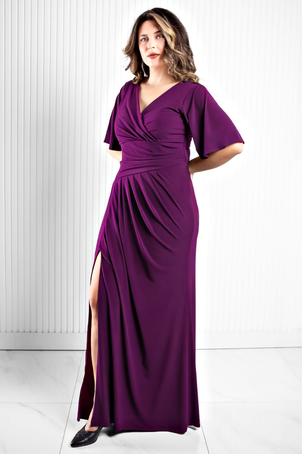 Dökümlü Sandy Abiye Elbise Mürdüm MDV368 (MDV368-MÜRDÜM)