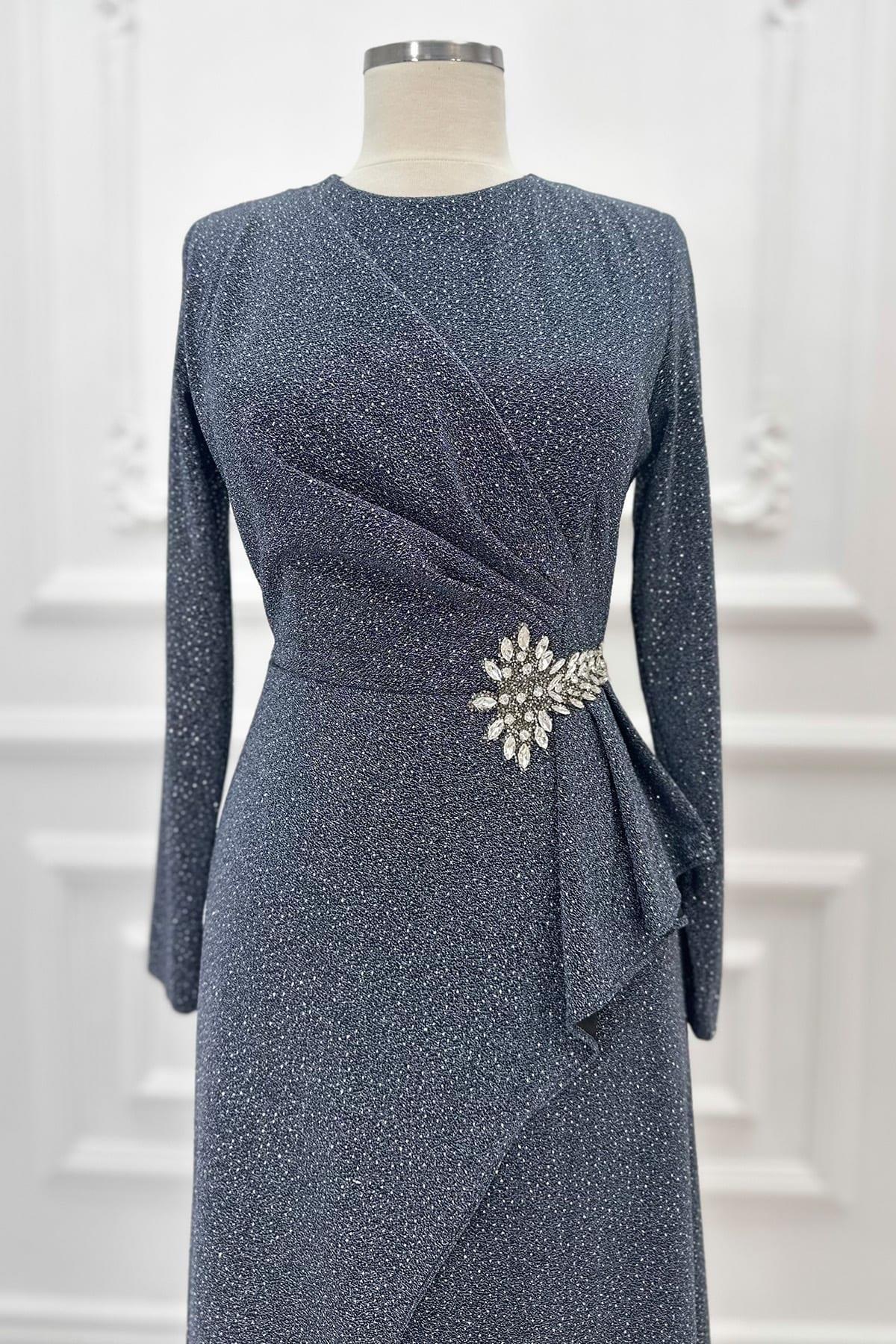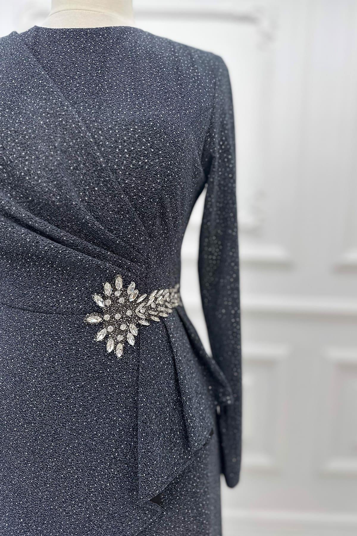 Product ID: AMH942 Click Here Fabric: : Glitter Fabric style="">Season: 4 seasons Detail: It is lined. There is a stone buckle detail on the waist. It has a zipper Items excluded: instant shawl Lining: unlined Collar: Tippet collar Fit: regular Product lenght: 150 cm (length from shoulder to hem) Chest: 88cm Waist: 74cm Hips: 98cm '' 4cm '' difference between sizes. Size Chart Delivery: The item is given to delivery within '' 48 hours ''