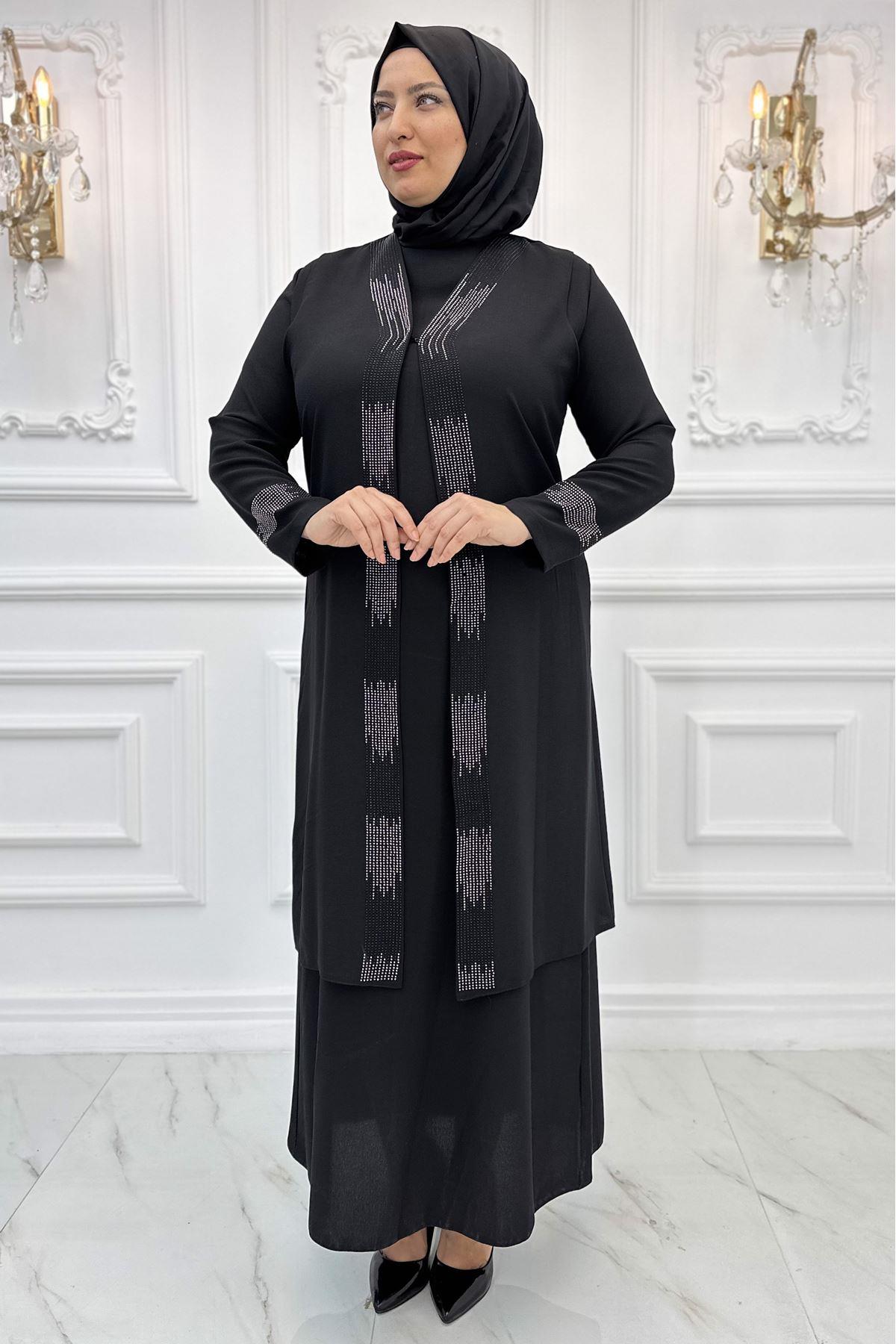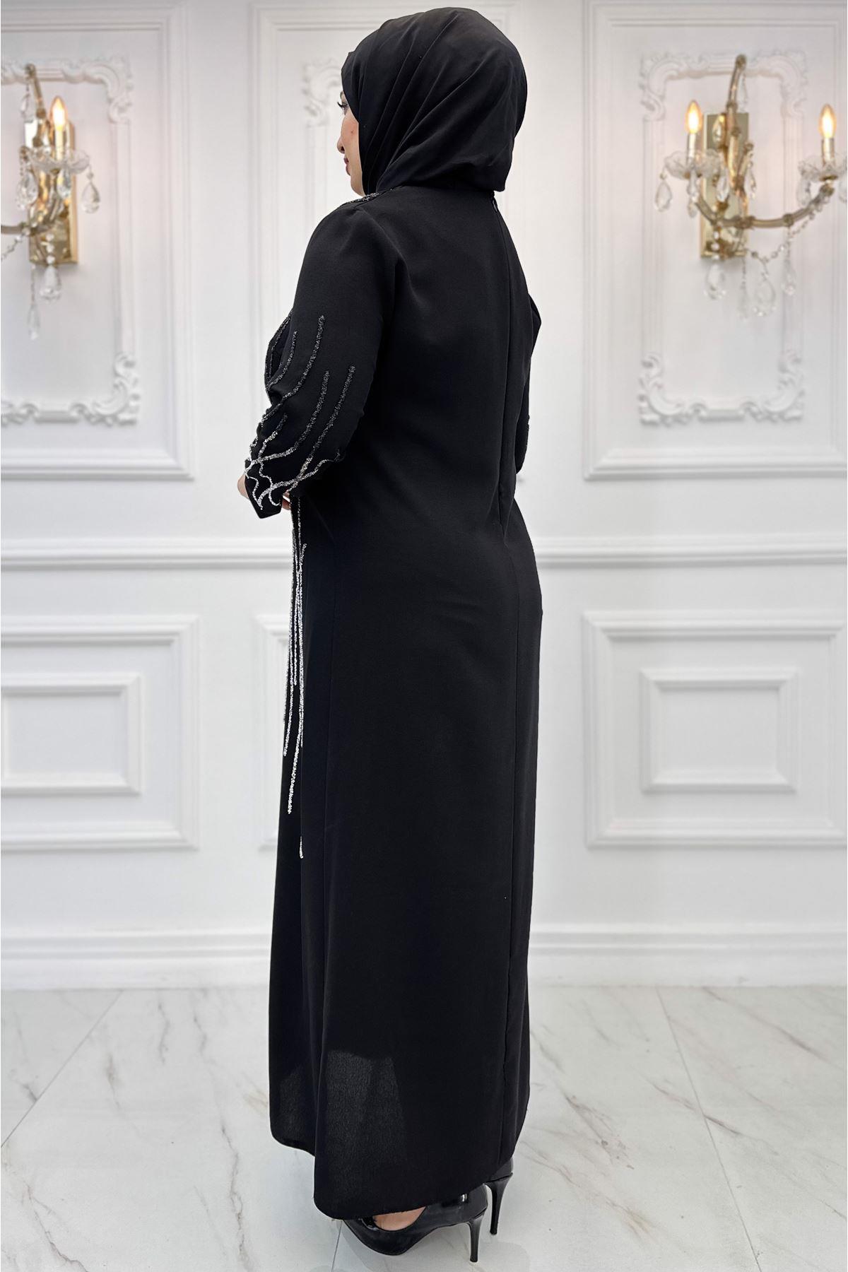 Product ID: AMH960 Click Here round collarFabric: 100% Crepe fabric style="">Season: 4 seasons Detail: One piece evening dress / Collar and upper arms have stone details / Concealed zipper at the back. Items excluded: instant shawl Lining: unlined Collar: Shirt collar Fit: regular Product lenght: 147 cm (length from shoulder to hem) Chest: 88cm Waist: 74cm Hips: 98cm '' 4cm '' difference between sizes. Size Chart Delivery: The item is given to delivery within '' 48 hours ''