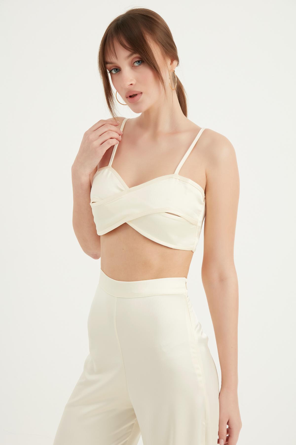 BİYE DETAYLI İNCE ASKILI BÜSTİYER (2083-KIRIK BEYAZ)