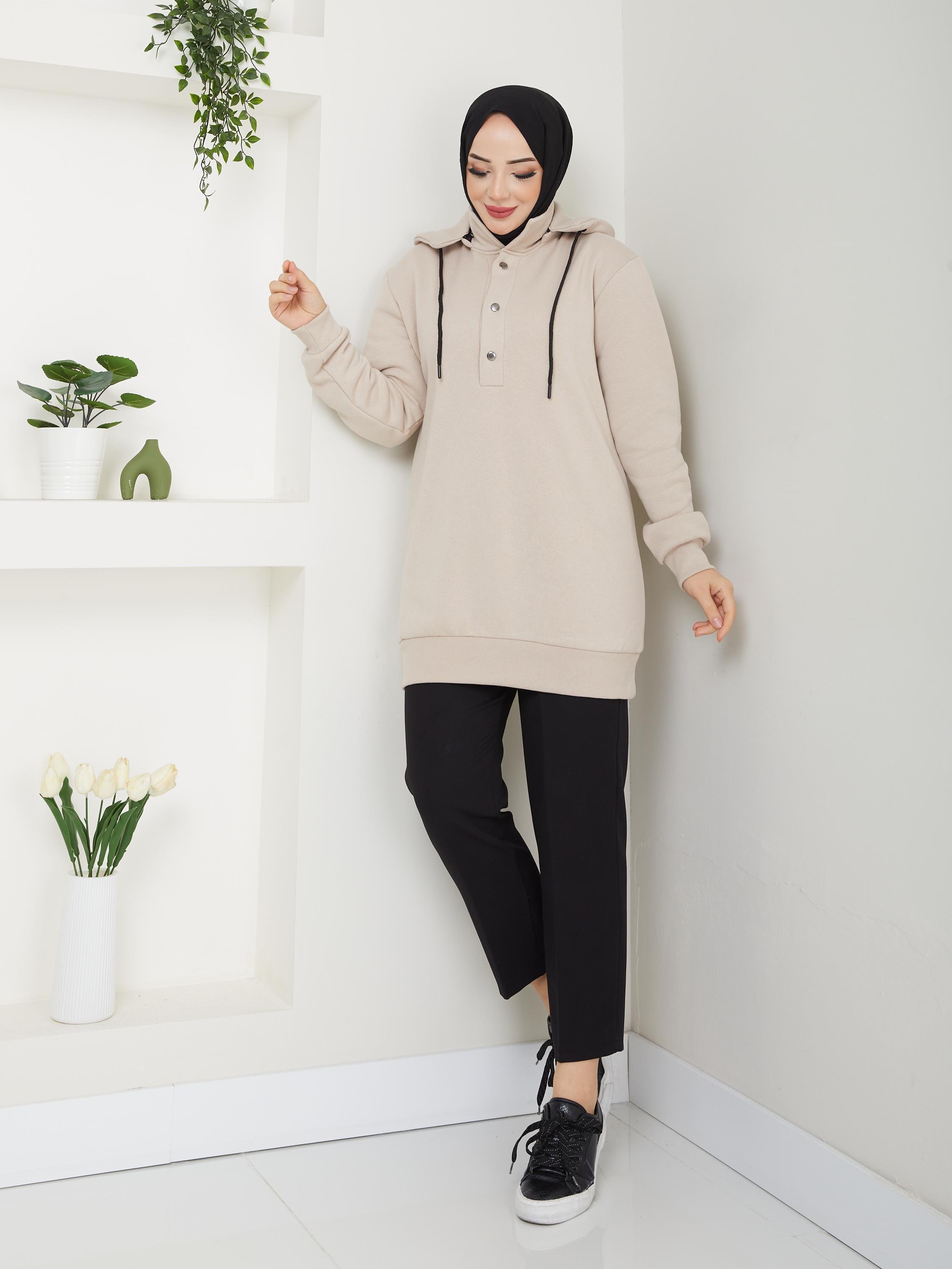 Product ID: ANR42 Click Here Fabric: : 3 thread raised fabric style="">Season: 4 seasons Detail: The hood is removable. The front has snap details. Items excluded: instant shawl Lining: unlined Collar: Round collar Fit: regular Product lenght: 90 cm (length from shoulder to hem) Chest: 88cm Waist: 74cm Hips: 98cm '' 4cm '' difference between sizes. Size Chart Delivery: The item is given to delivery within '' 48 hours ''