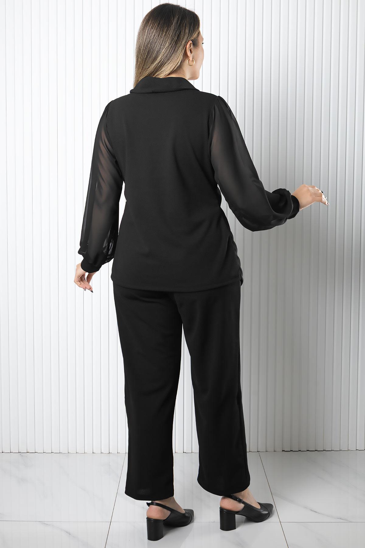 İnci Detaylı Şifon Bluz (MDV976-Siyah)