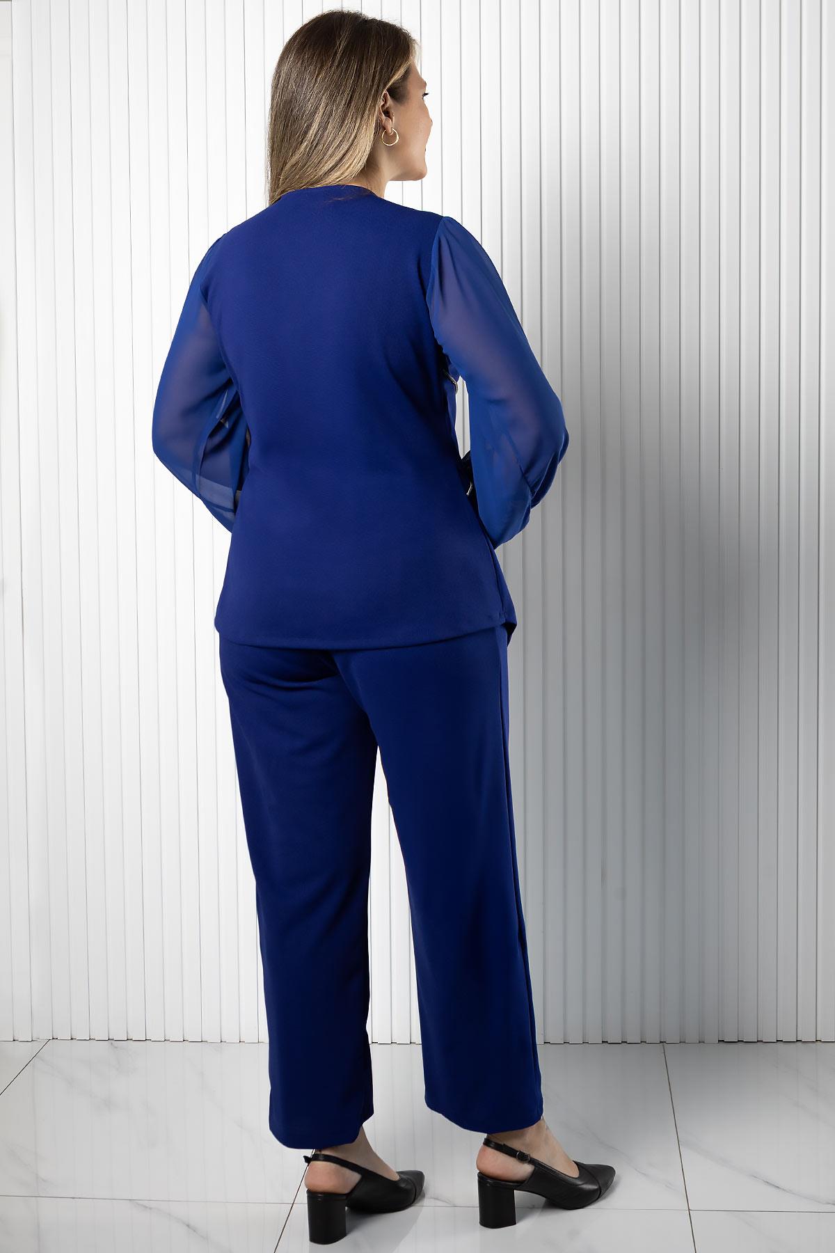 Kruvaze Bluz Pantolon Takım (MDV964-Saks)