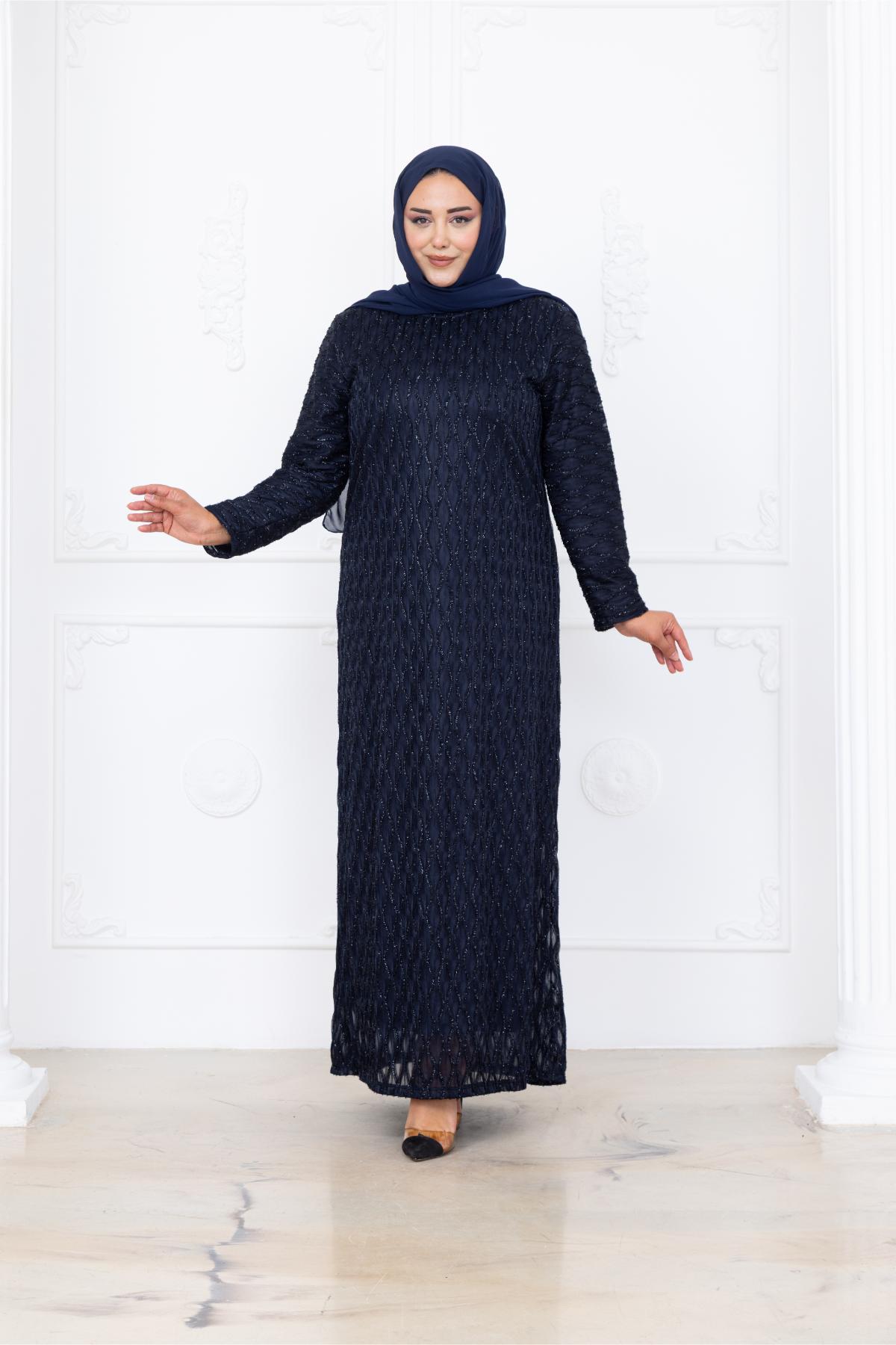Mahi Simli Dantel Tesettür Abiye (AMH1094-LACİVERT)