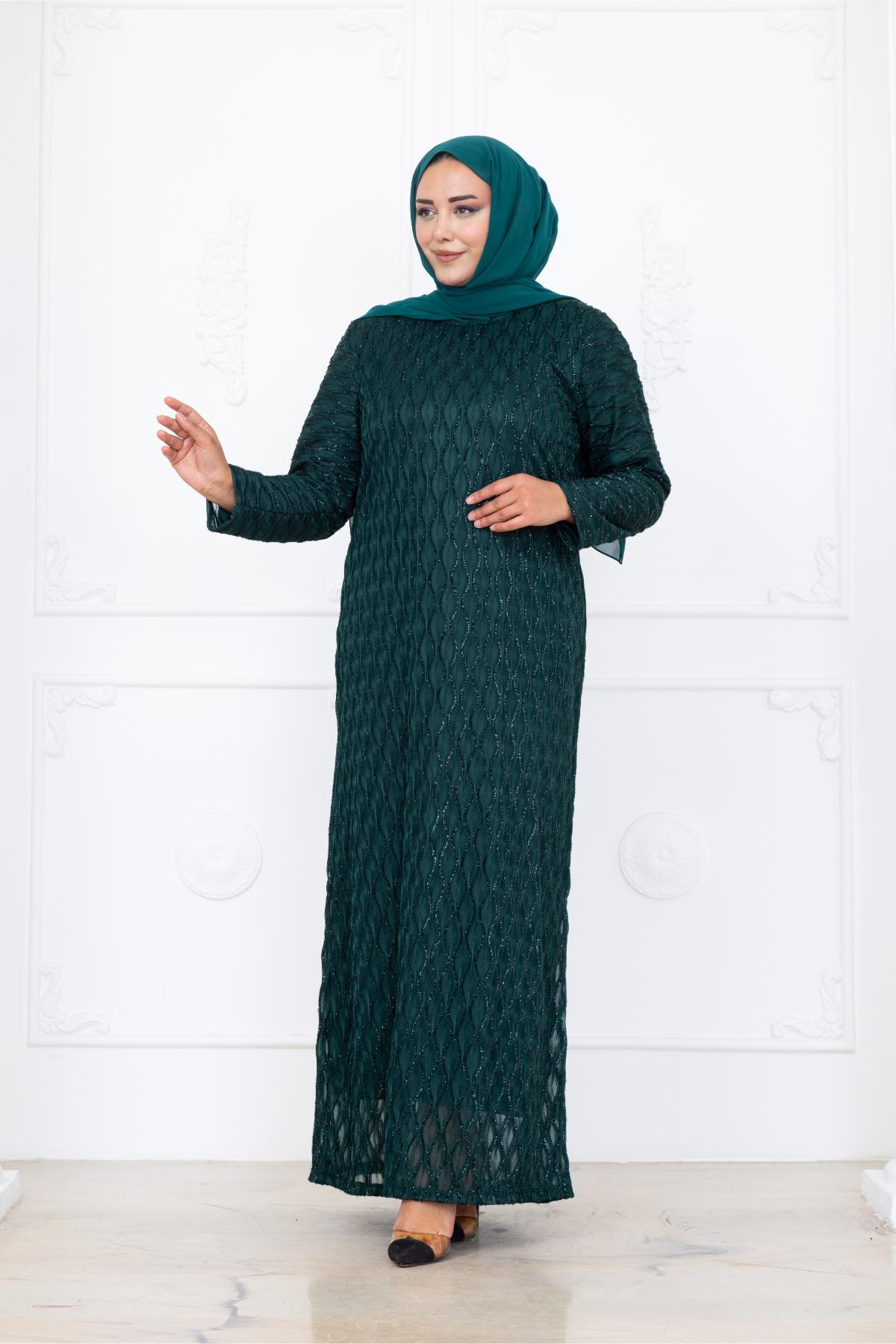 Mahi Simli Dantel Tesettür Abiye (AMH1094-ZÜMRÜT)