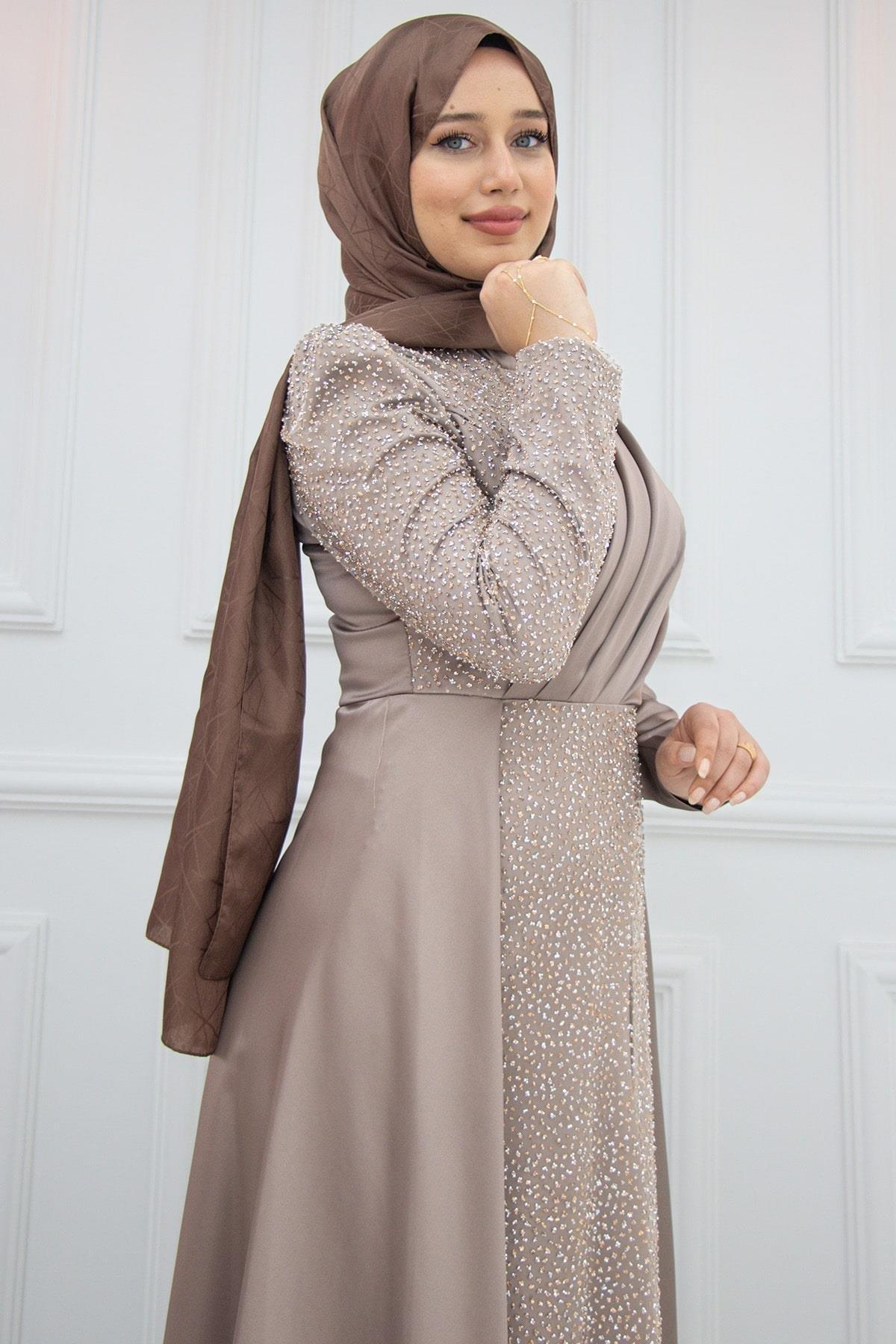 Product ID: AMH972 Click Here for more information about Returns Procedure Fabric: Satin Fabric Season: 4 seasons Detail: It has embroidery details and a zipper. Items excluded: instant shawl Lining: lined Collar: Tippet collar Fit: regular Product lenght: Jacket 79 cm dress 157 cm (length from shoulder to hem) Chest: 88cm Waist: 74cm Hips: 98cm '' 4cm '' difference between sizes. Size Chart Delivery: The item is given to delivery within '' 24 hours ''
