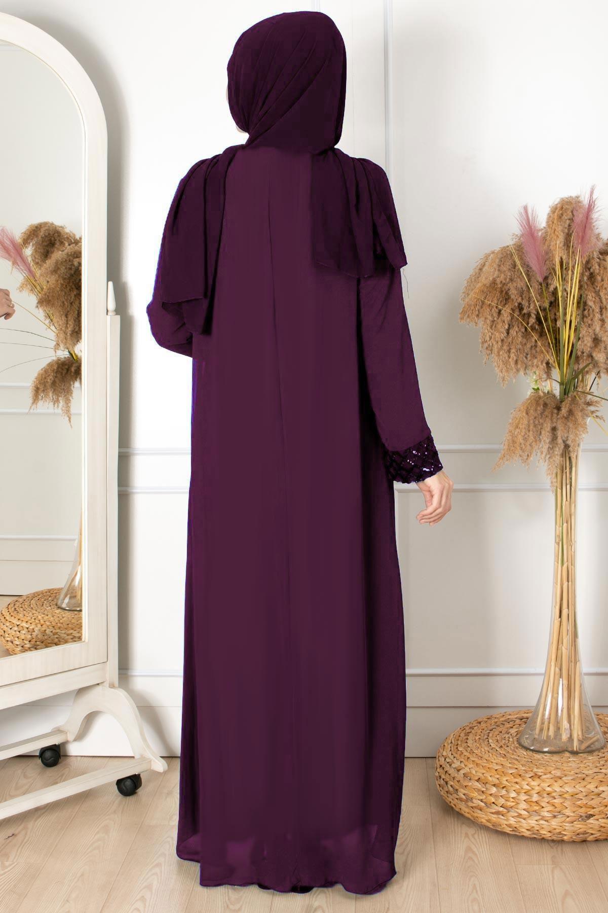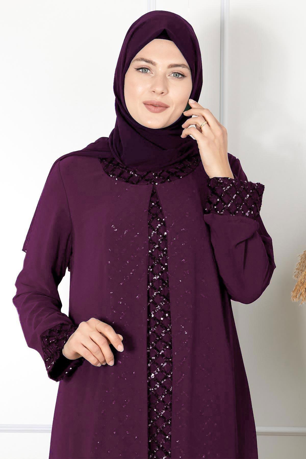 Product ID: FHM854 Click Here for more information about Returns Procedure Fabric: Sequin fabric with outer chiffon inner lining Season: 4 seasons Detail: It is chiffon and sequin detailed. Thanks to its flexible structure, it is wrinkle resistant and breathable. It is suitable for frequent and long-term use with its non-weight fabric feature. It is lined. Items excluded: instant shawl Lining: unlined Collar: Round collar Fit: regular Product lenght: 153 cm (length from shoulder to hem) Chest: 88cm Waist: 74cm Hips: 98cm '' 4cm '' difference between sizes. Size Chart Delivery: The item is given to delivery within '' 24 hours ''