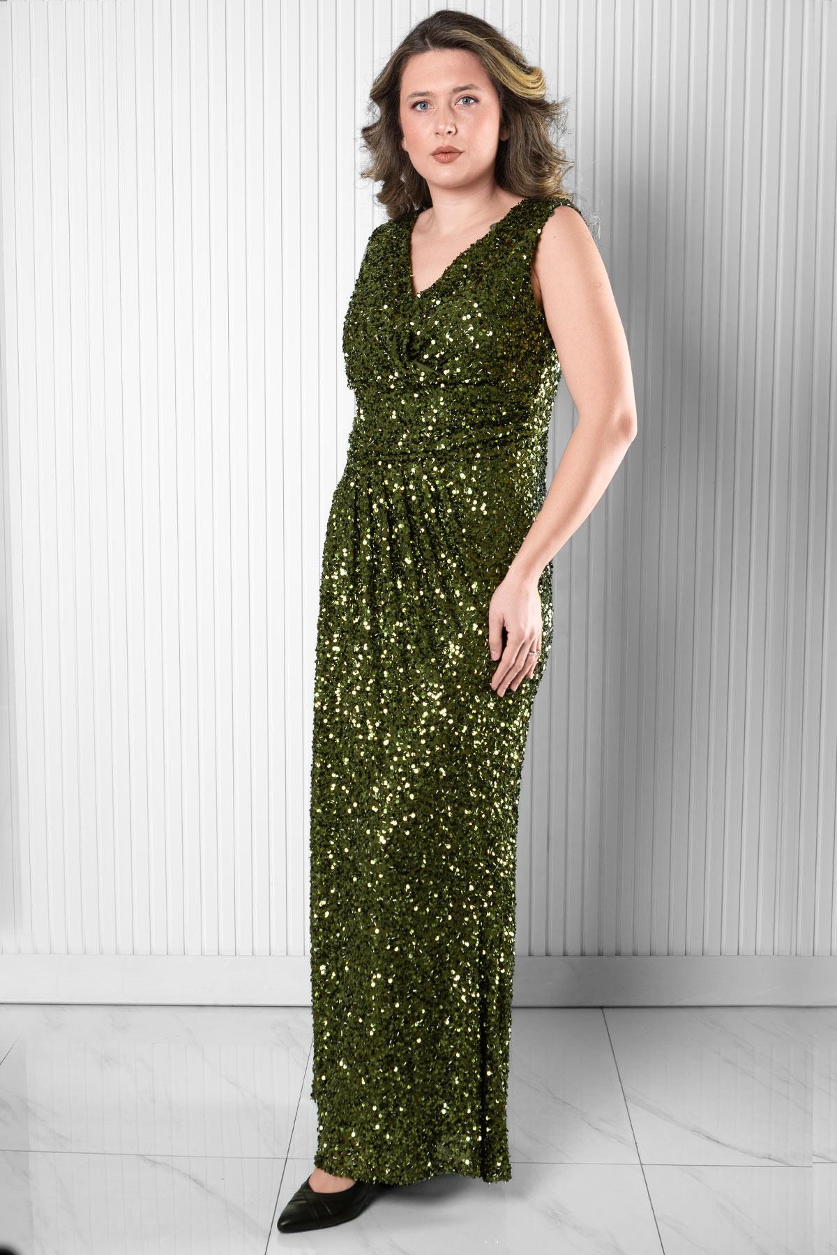 Sequined Evening Dress Khaki MDV372 (MDV372-HAKİ)
