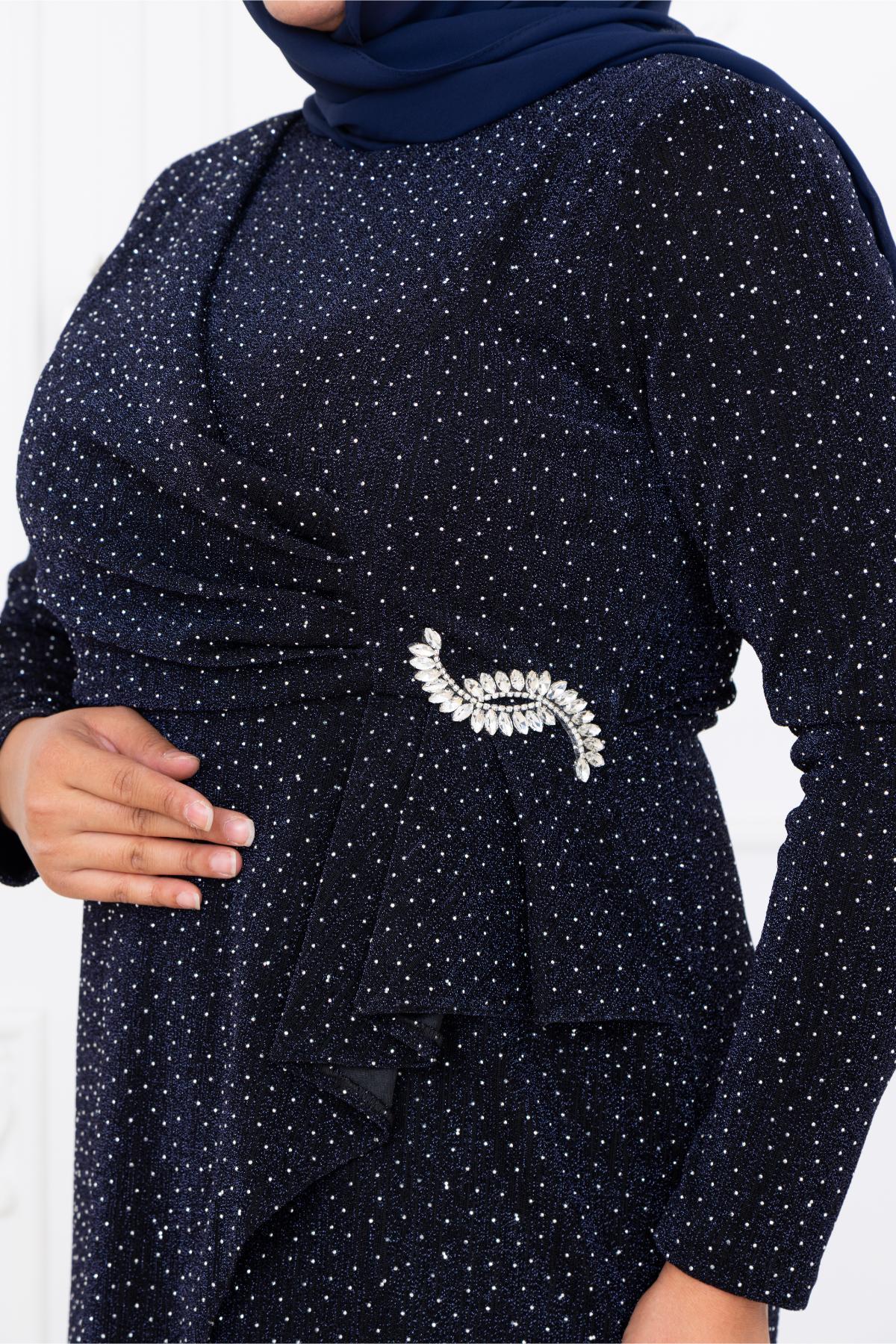 Roza Tesettür Abiye (AMH1098-LACİVERT)