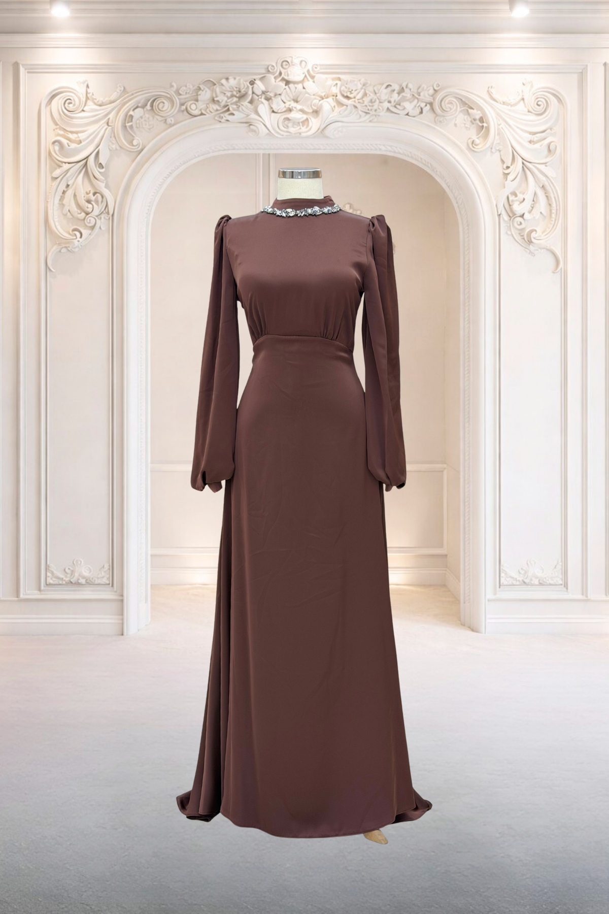 Rüya Saten Abiye (AMH1140-Kahverengi)