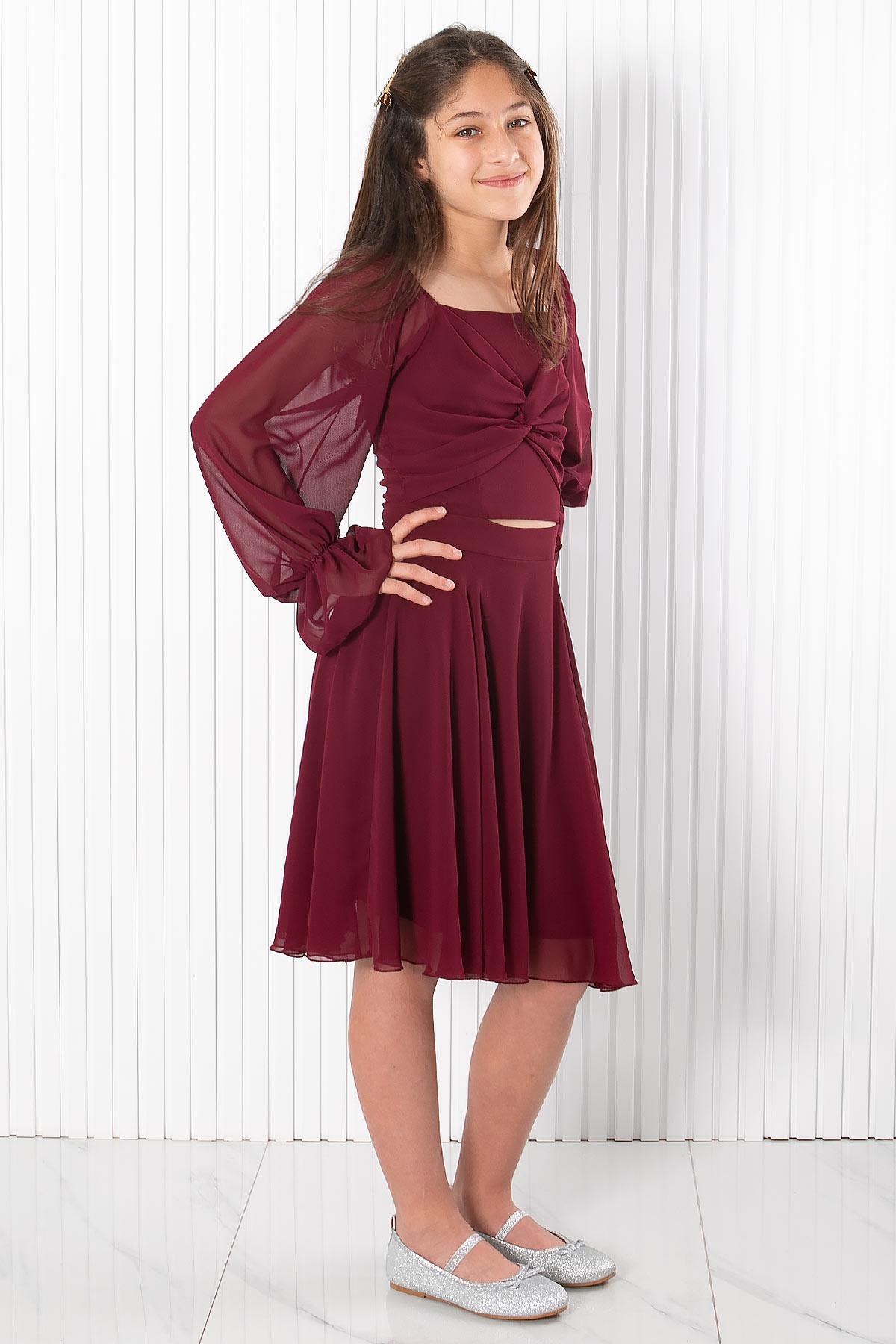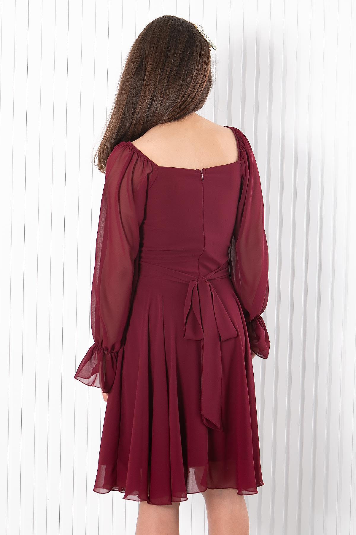 Balloon Sleeve Chiffon Evening Dress Plum MDV934 (MDV934-Mürdüm)