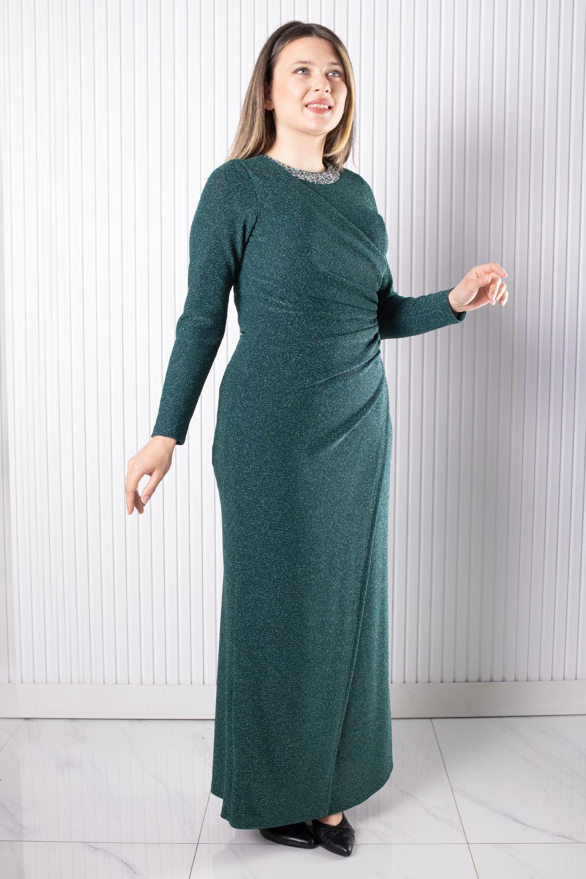 Taş Baskı Detaylı Abiye (MDA2537-YEŞİL)