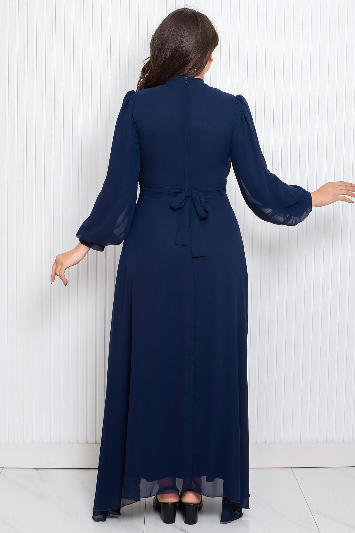 Stone Print Detailed Chiffon Evening Dress Navy Blue FHM950 (FHM950-LACİVERT)