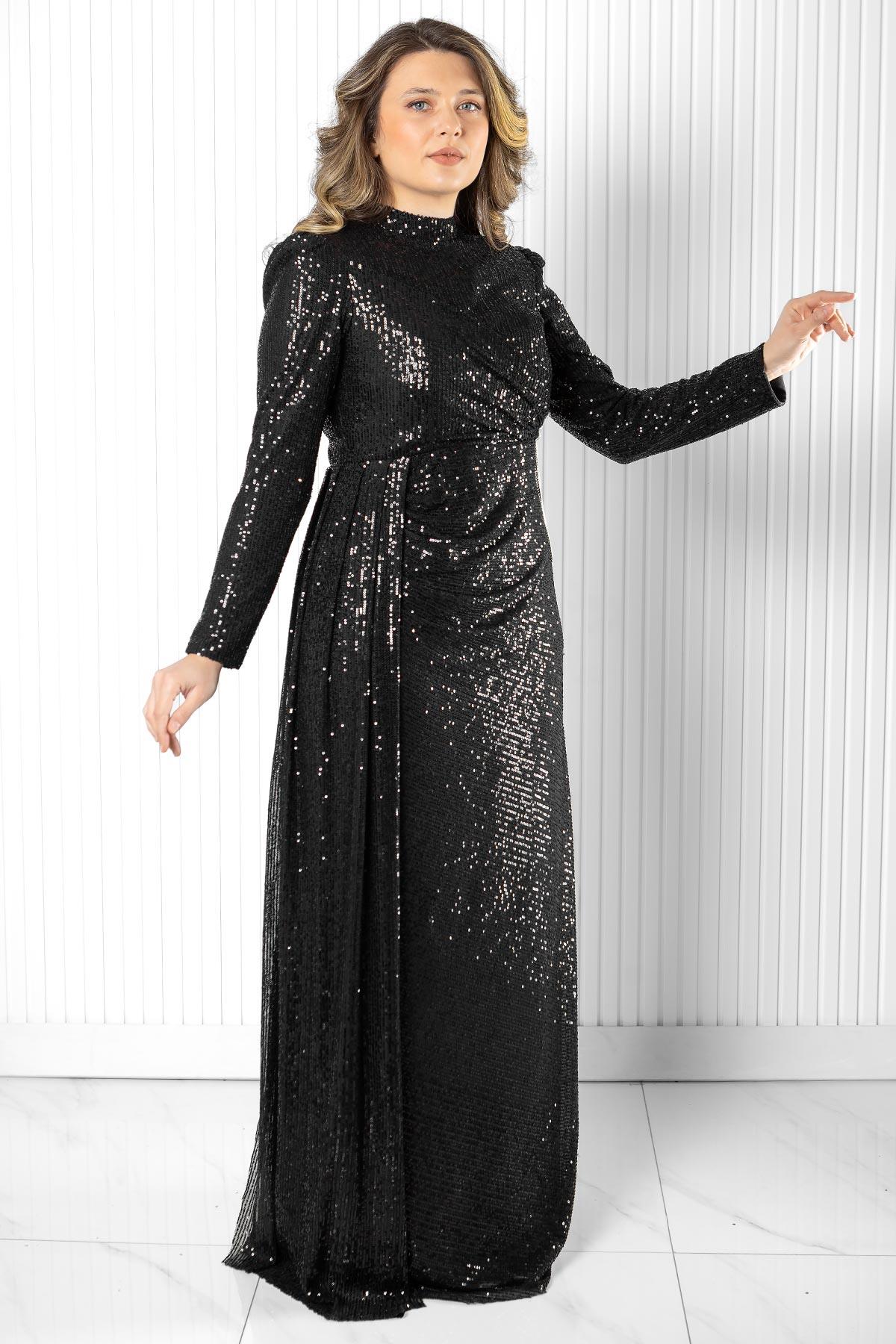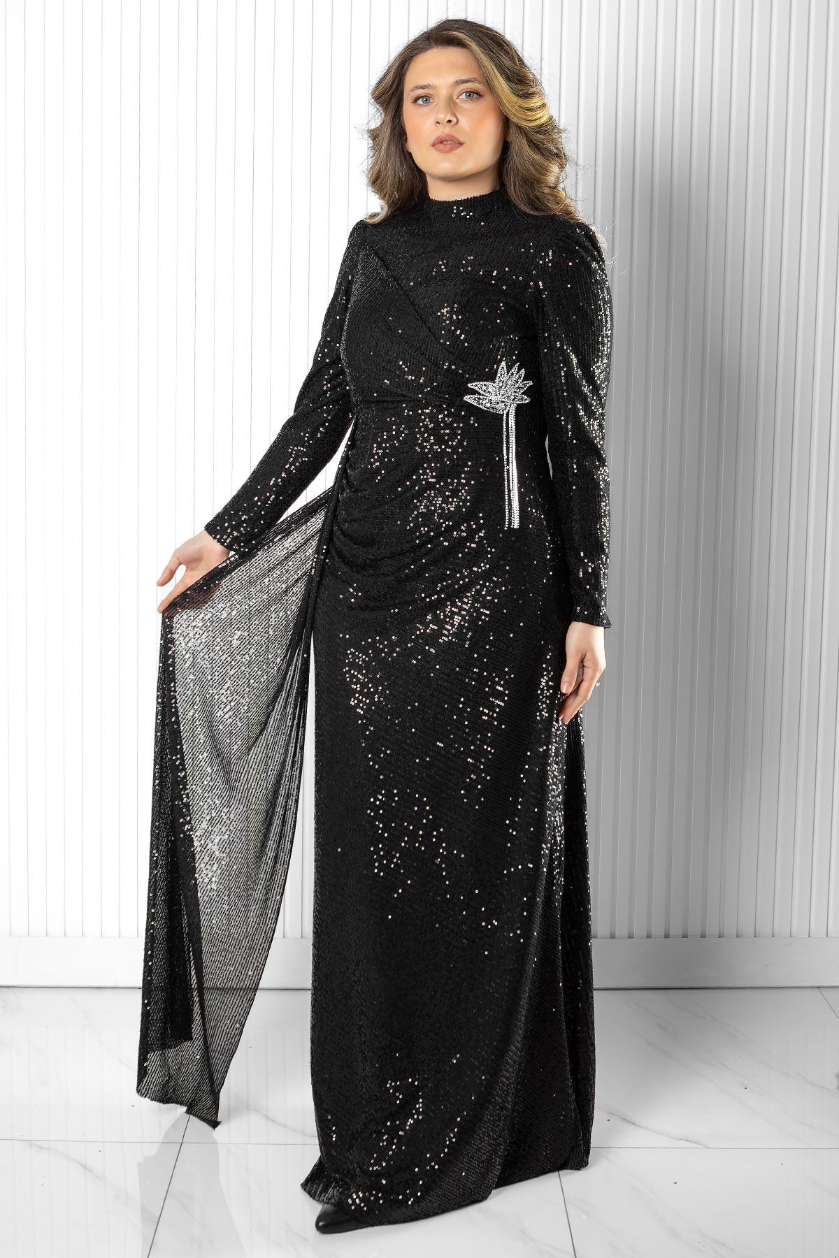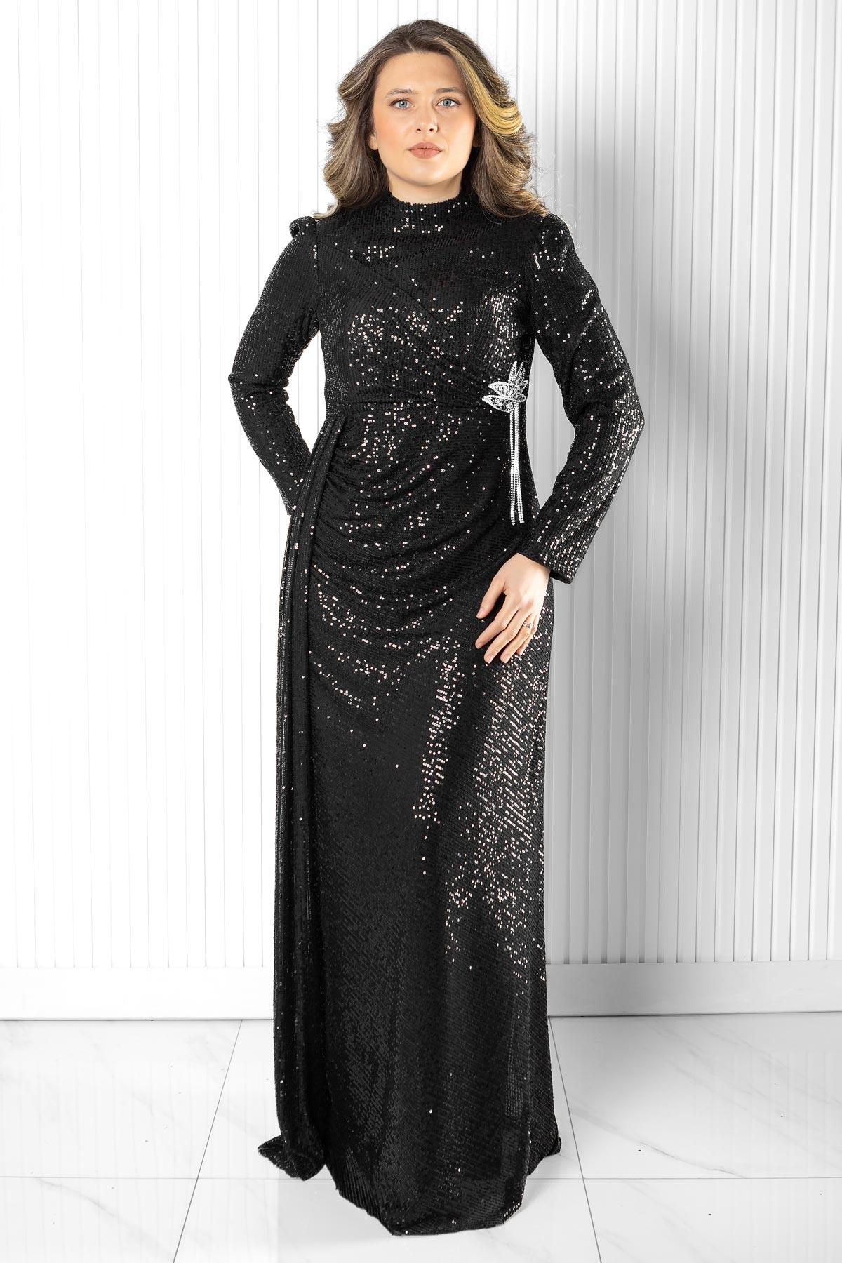 TAŞ İŞLEMELİ PAYETLİ ABİYE (MDA2524-SİYAH)
