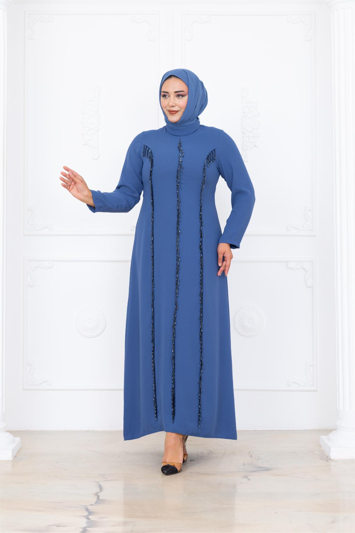 Tuna Tesettür Abiye (AMH1086-İNDİGO)