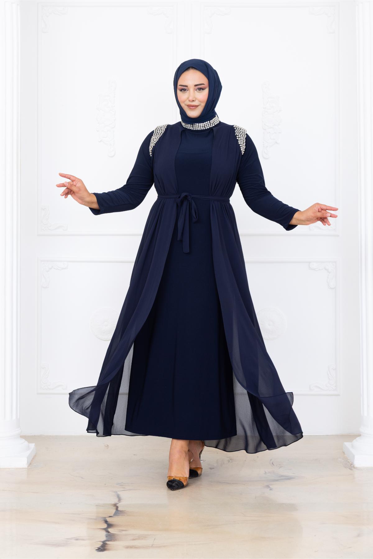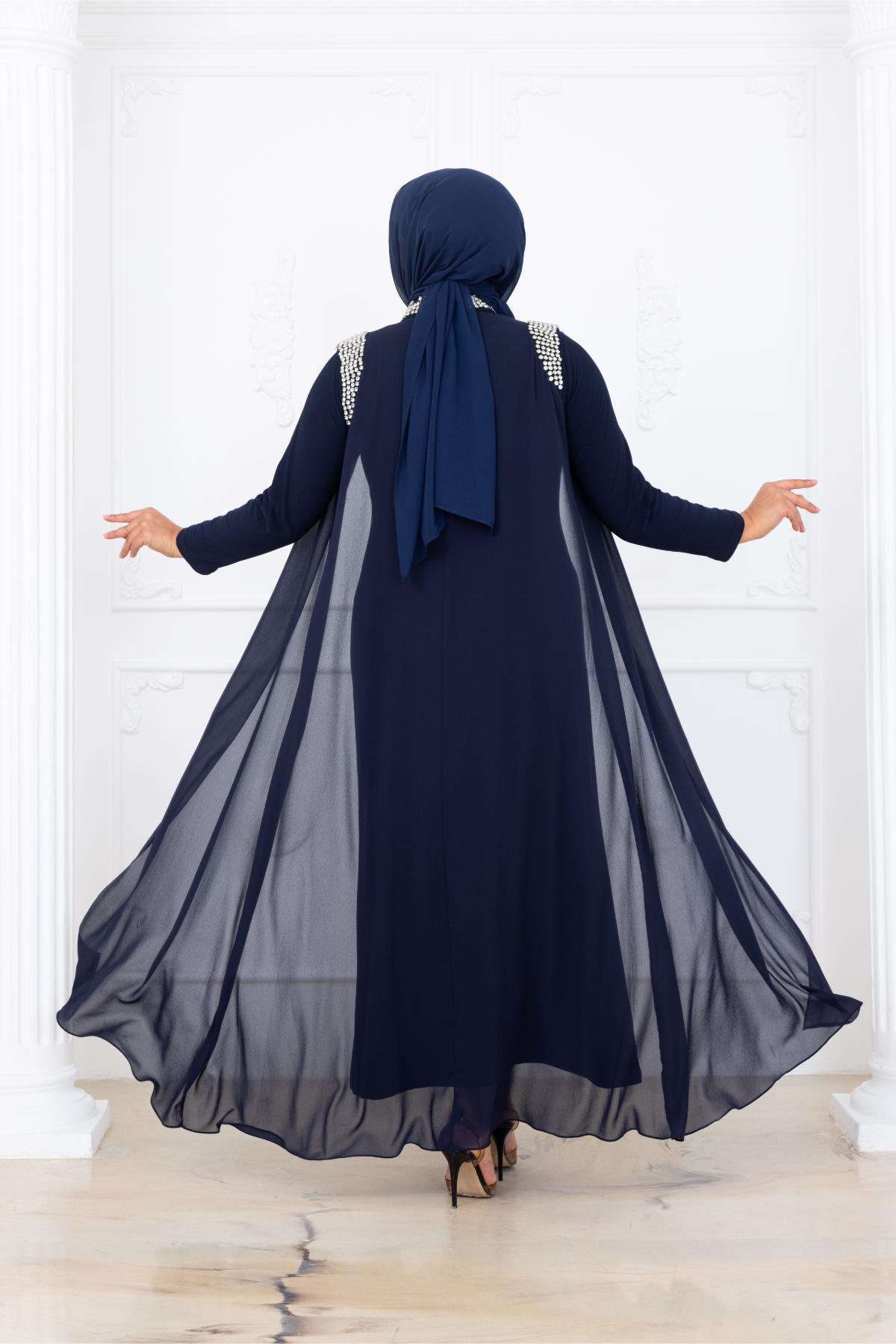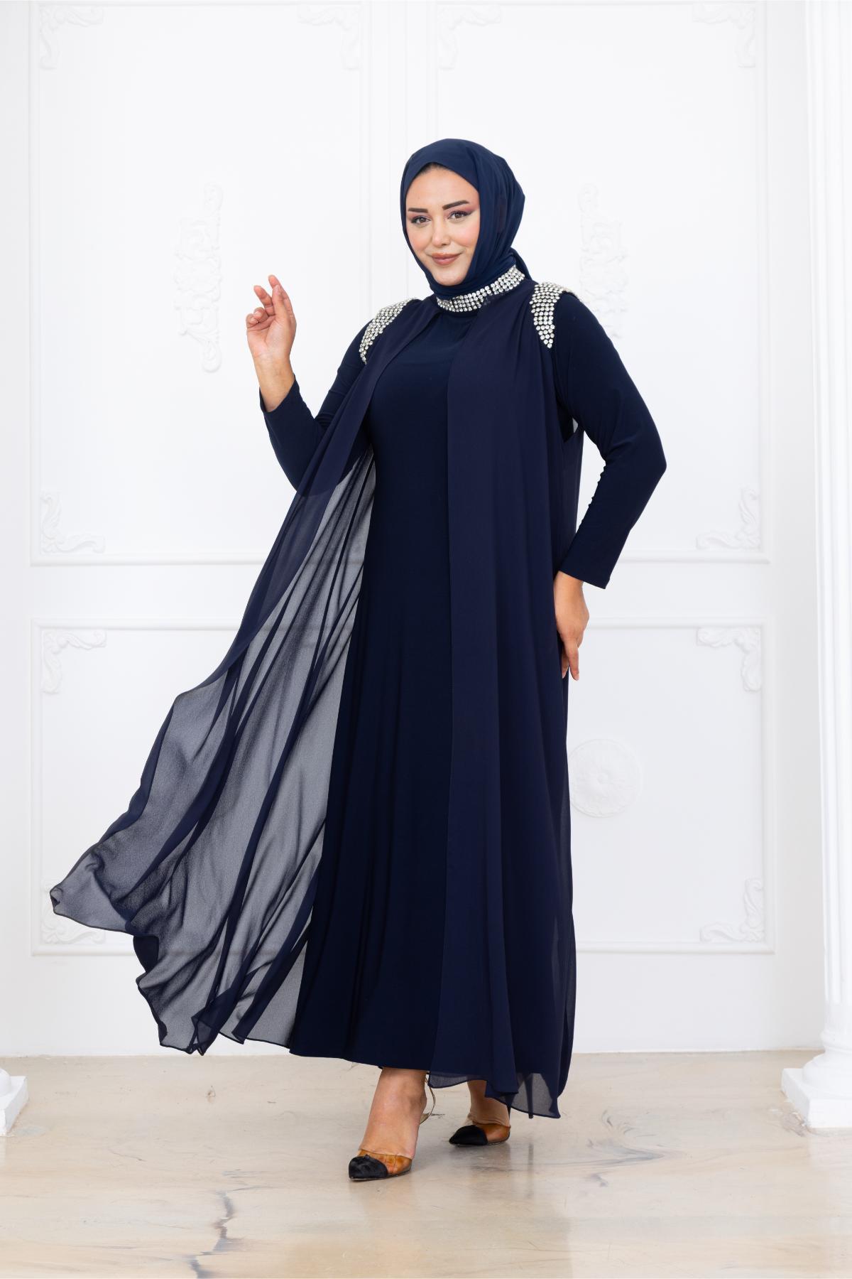 Zambak Şifon İncili Tesettür Abiye (AMH1088-LACİVERT)