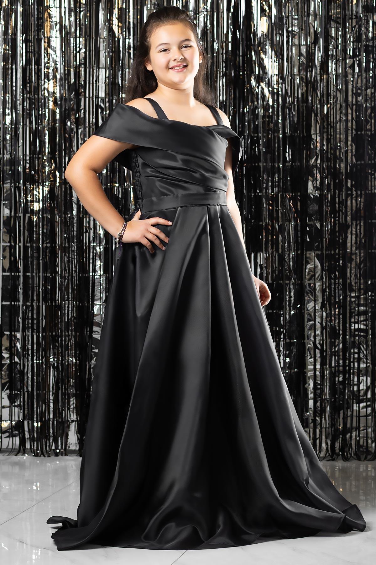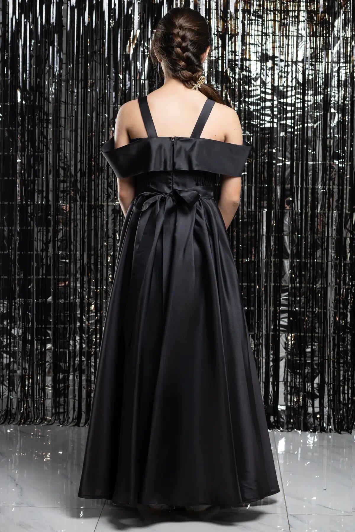 Robe de Soirée à Bretelles et Taille Elastique Noir MDV362 (MDV362-SİYAH)