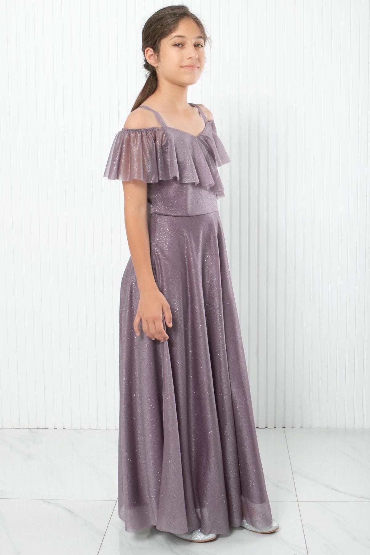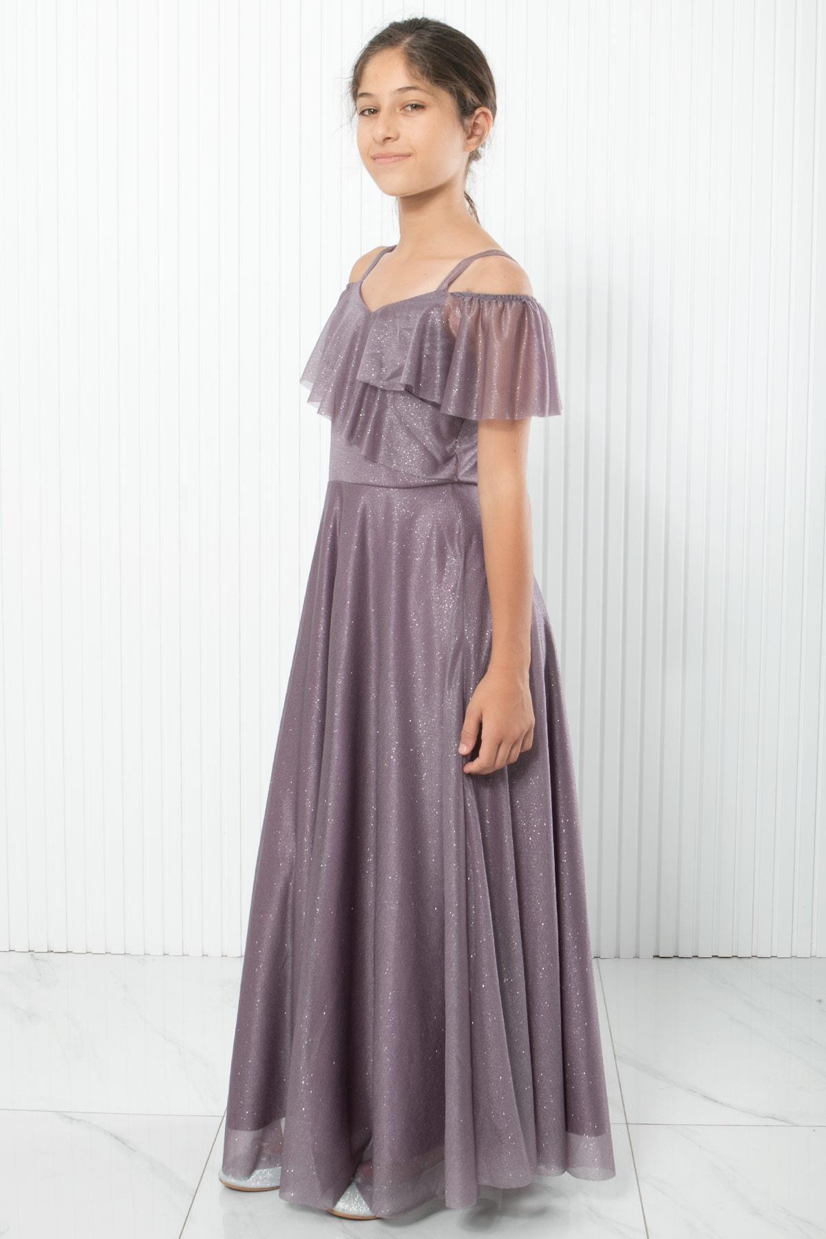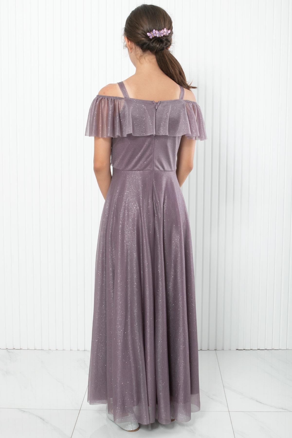 Robe De Soirée Argentée À Bretelles Lilas MDV938 (MDV938-LİLA)