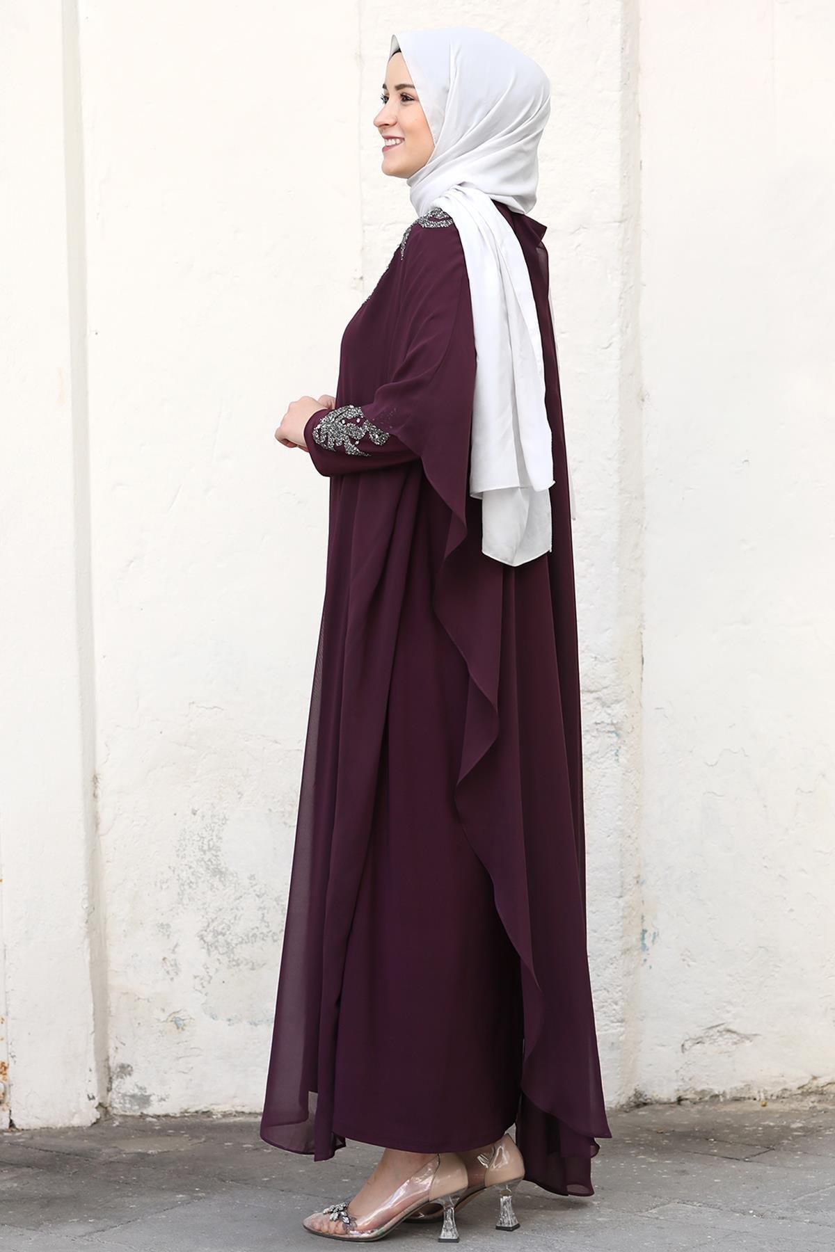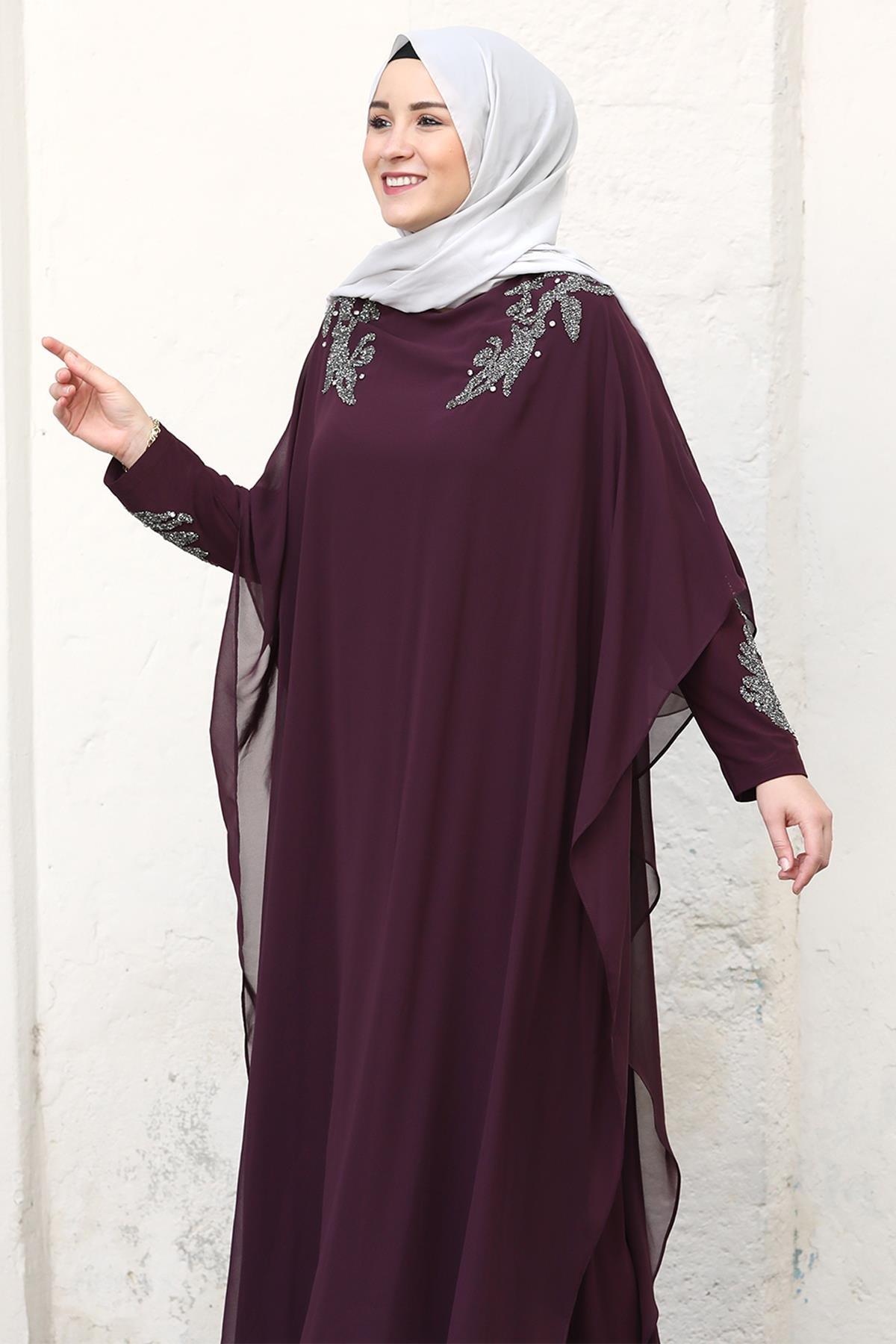 Robe de Soirée En Mousseline Prune AMH974 (AMH974-MÜRDÜM)