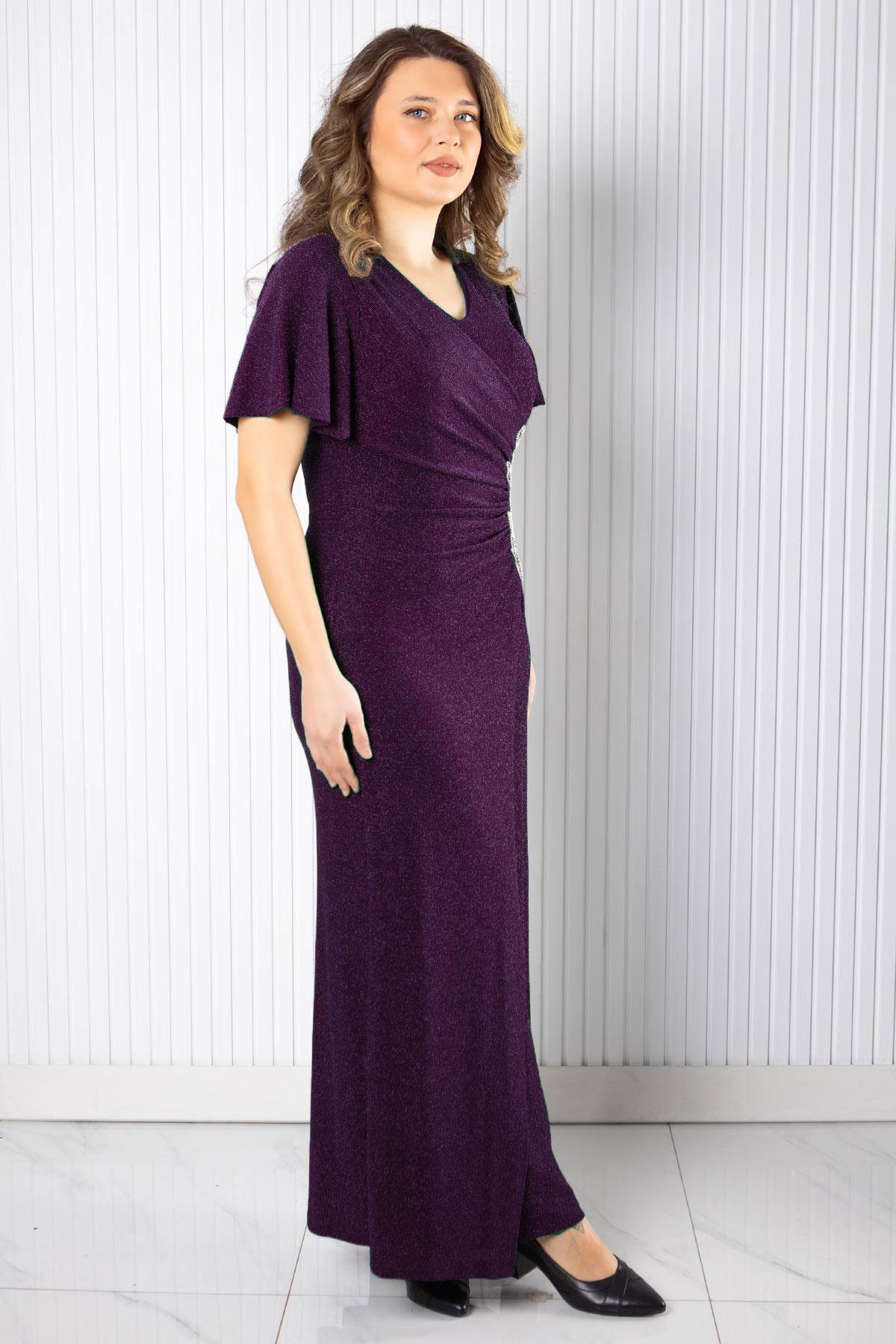 TAŞ BASKI DETAYLI SİMLİ ABİYE (MDA2533-MÜRDÜM)