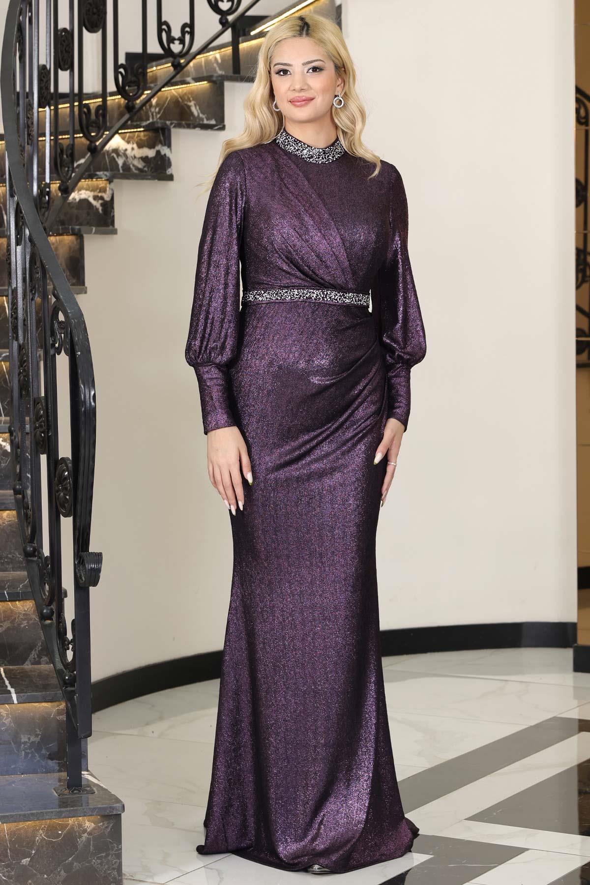 Hürrem Kuyruklu Taşlı Abiye Mor ELB76 (ELB76-MOR)