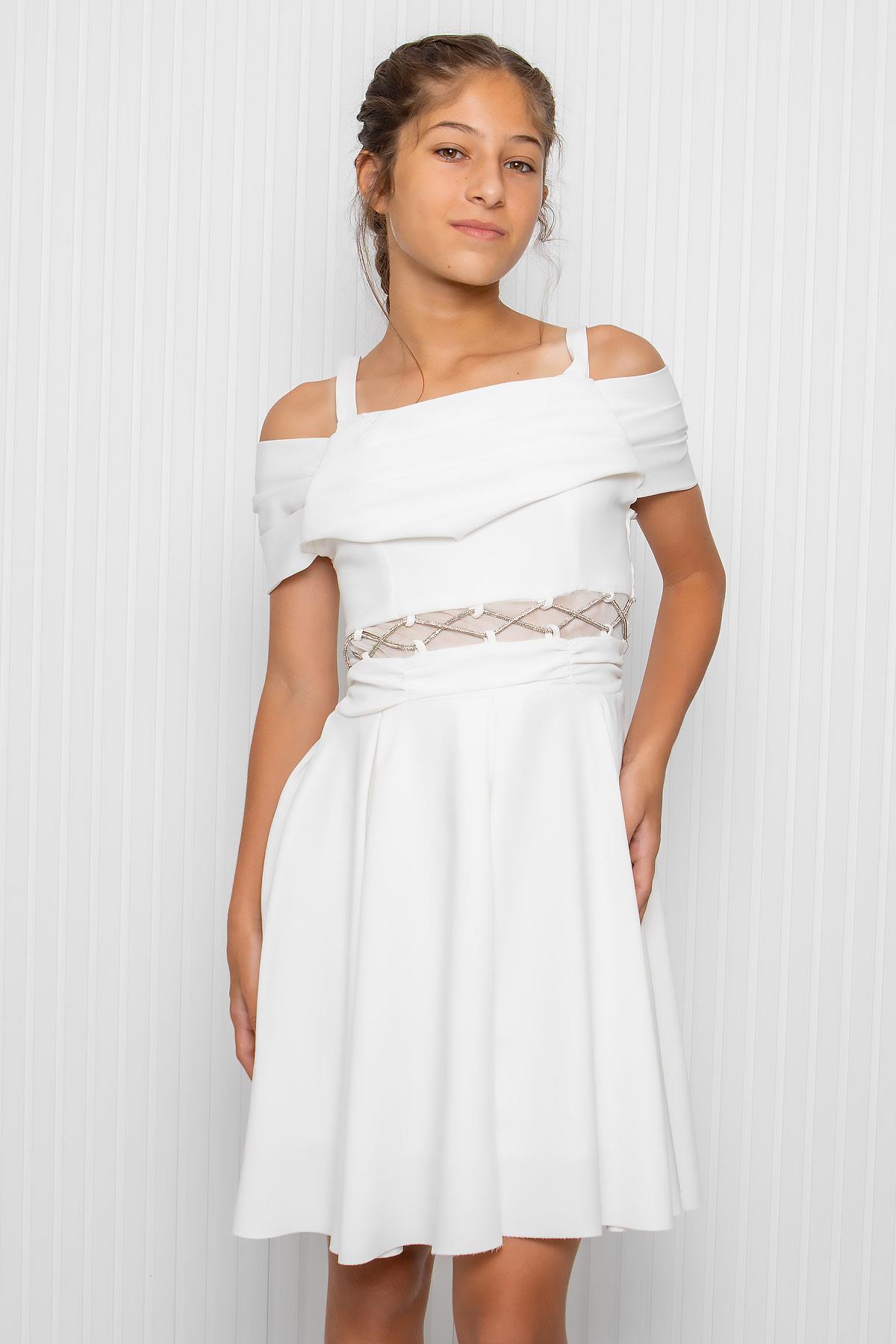 Kız Çocuk Bel Detaylı Abiye Elbise Ekru MDV348 (MDV348-EKRU)