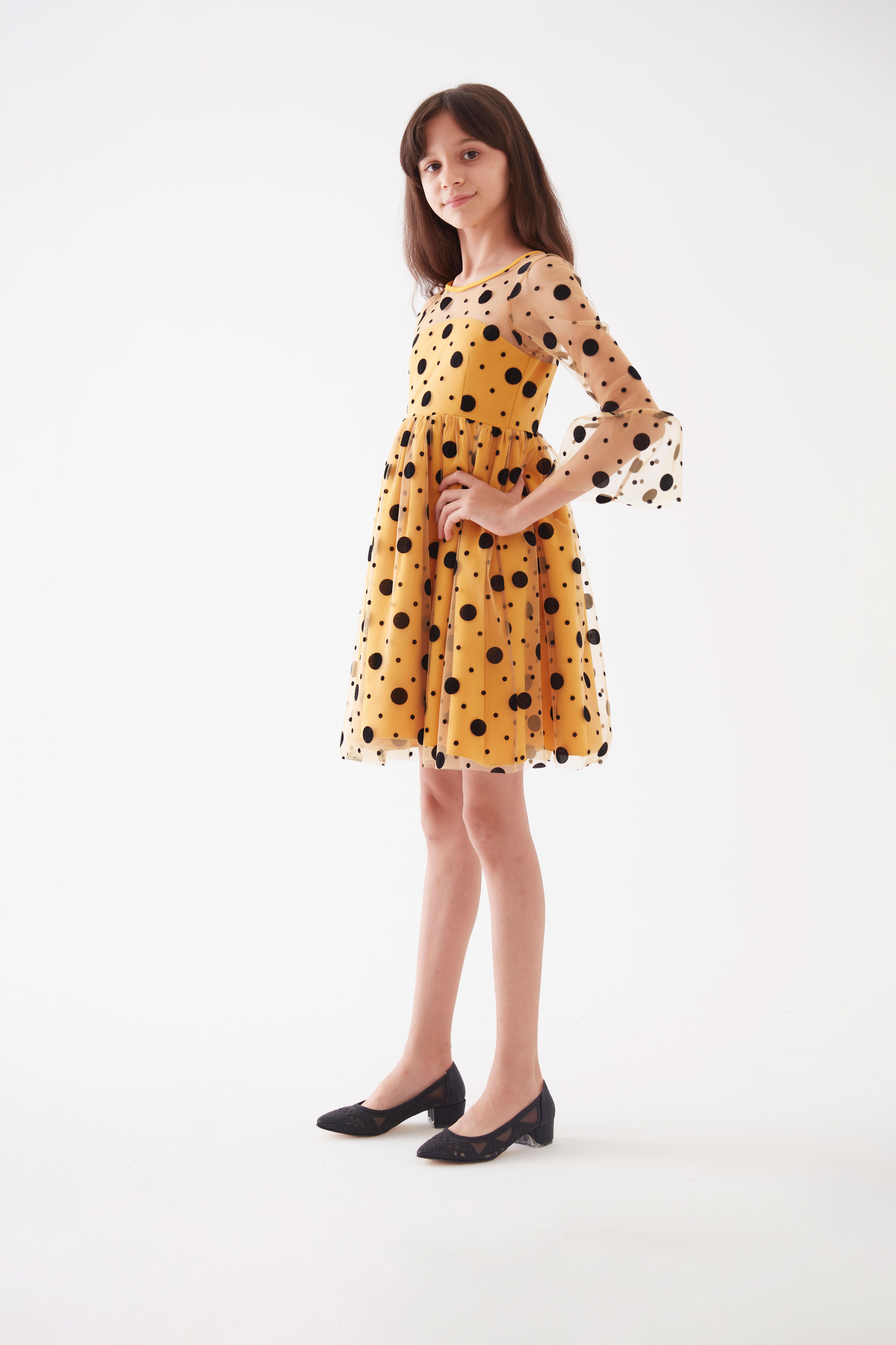 Kız Çocuk Puantiyeli Tüllü Elbise Sarı KVC886 (KVC886-SARI)