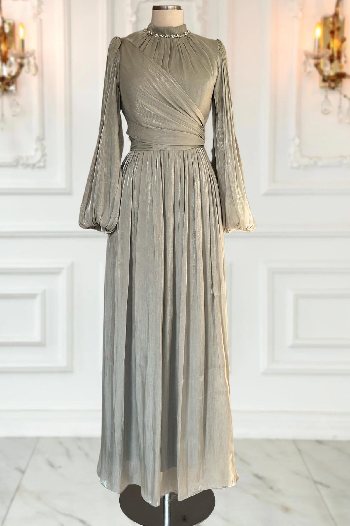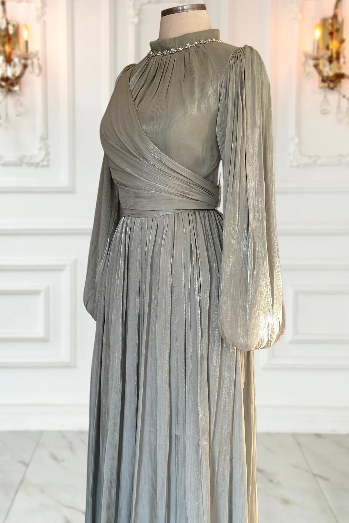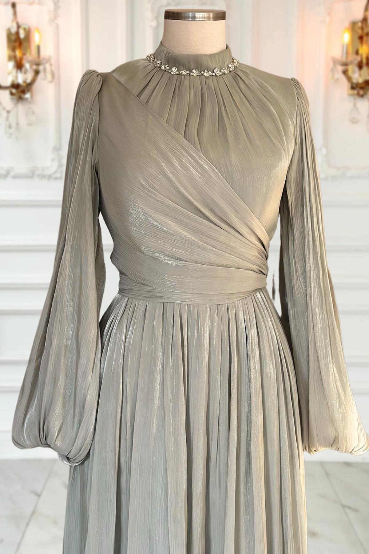 Ürün Kodu: AMH1036 Kumaş Özelliği: Metalize Krep Kumaş