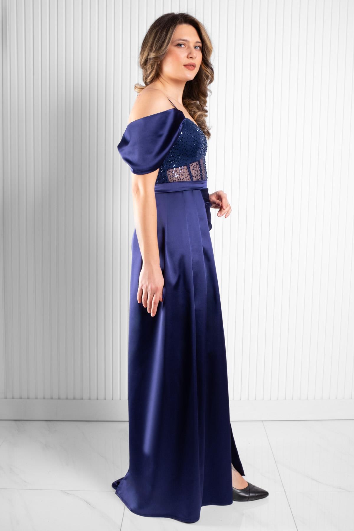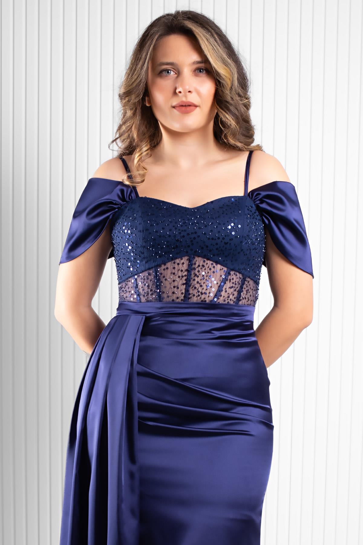 Pul Payet Detaylı Saten Abiye Lacivert MDV374 (MDV374-LACİVERT)