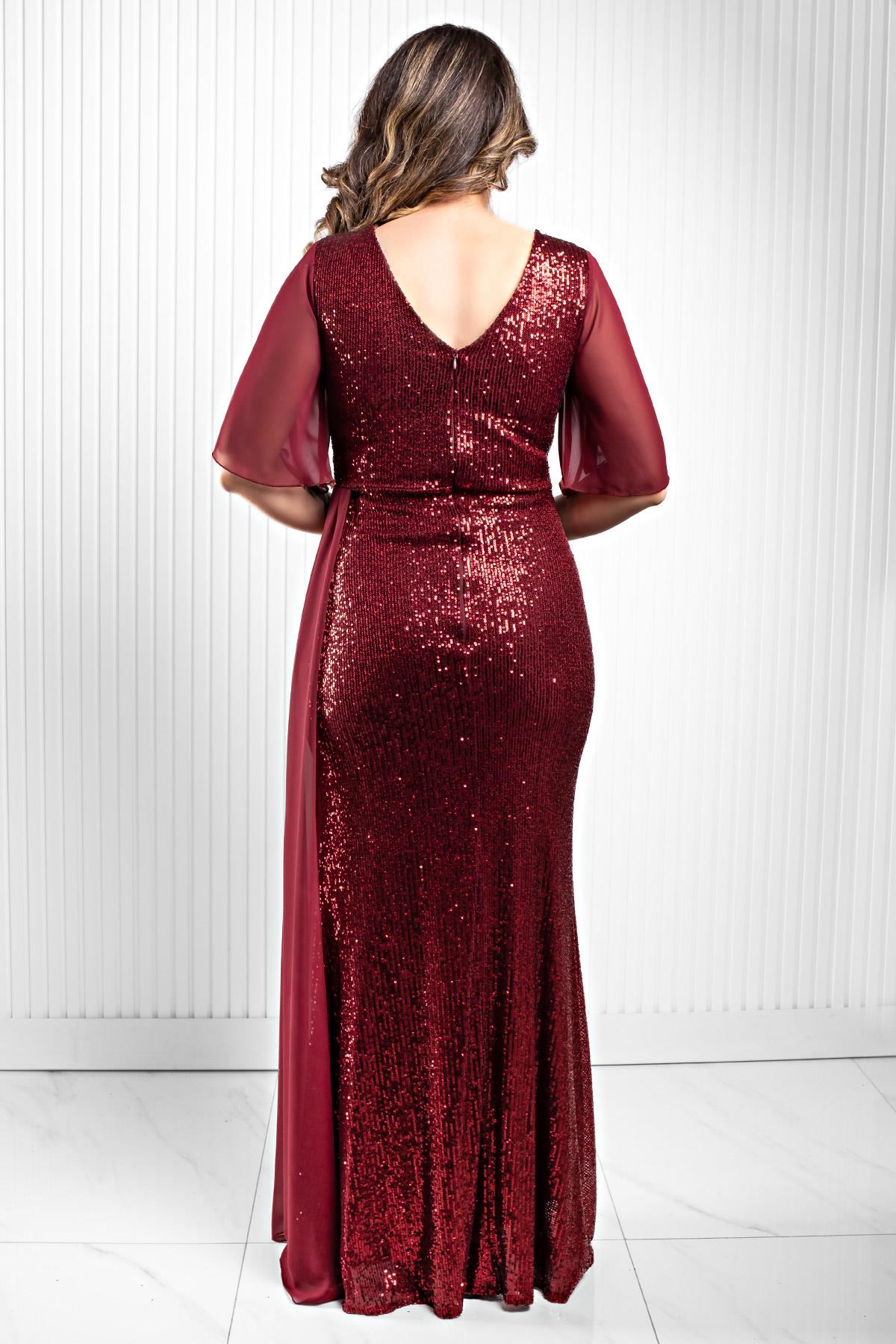 Pul Payetli Şifon Abiye Elbise Bordo MDV364 (MDV364-BORDO)