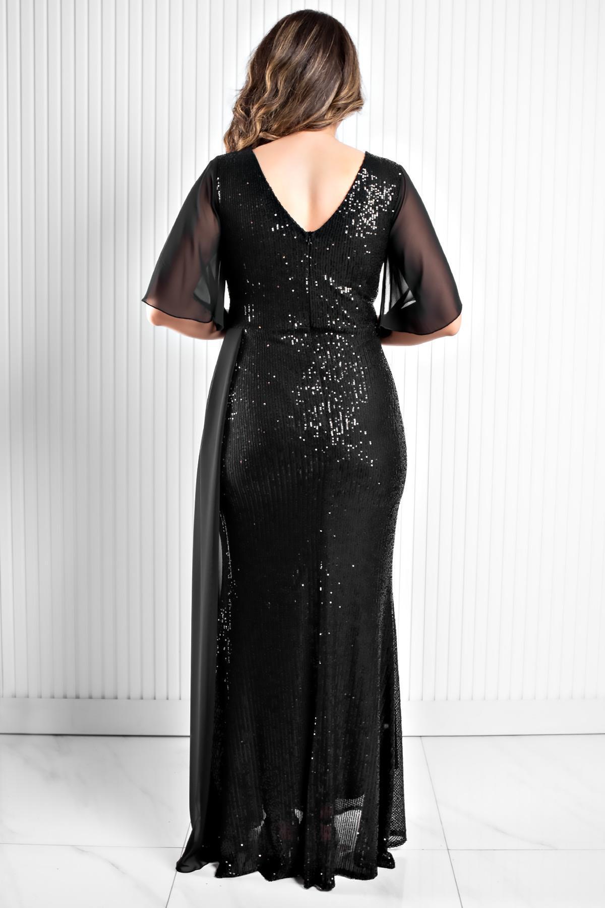 Pul Payetli Şifon Abiye Elbise Siyah MDV364 (MDV364-SİYAH)