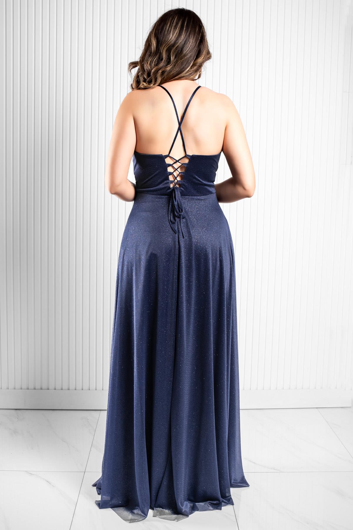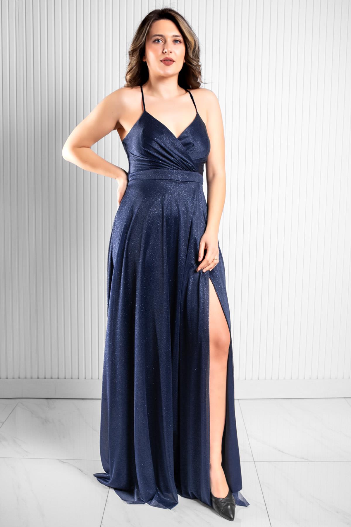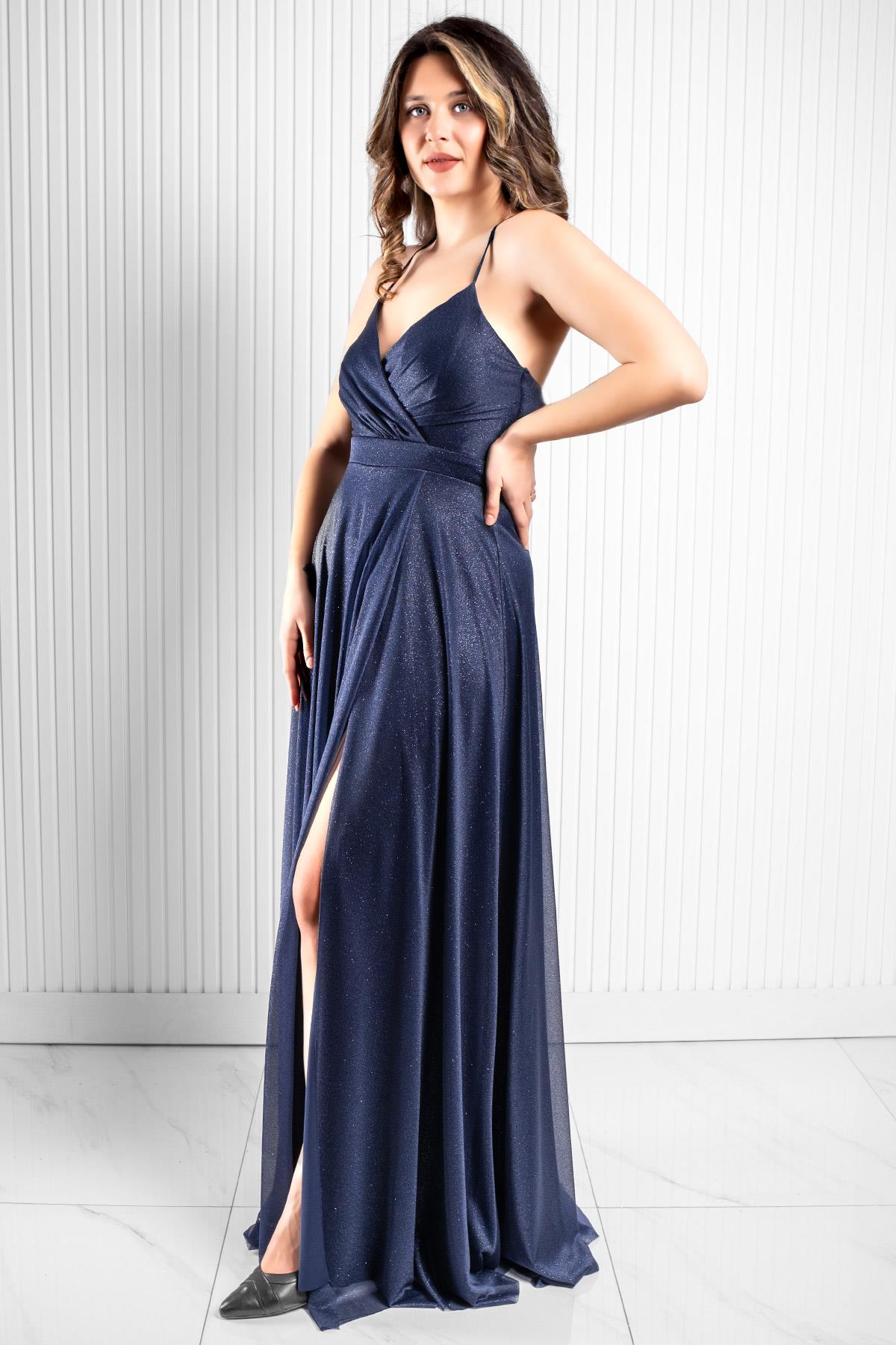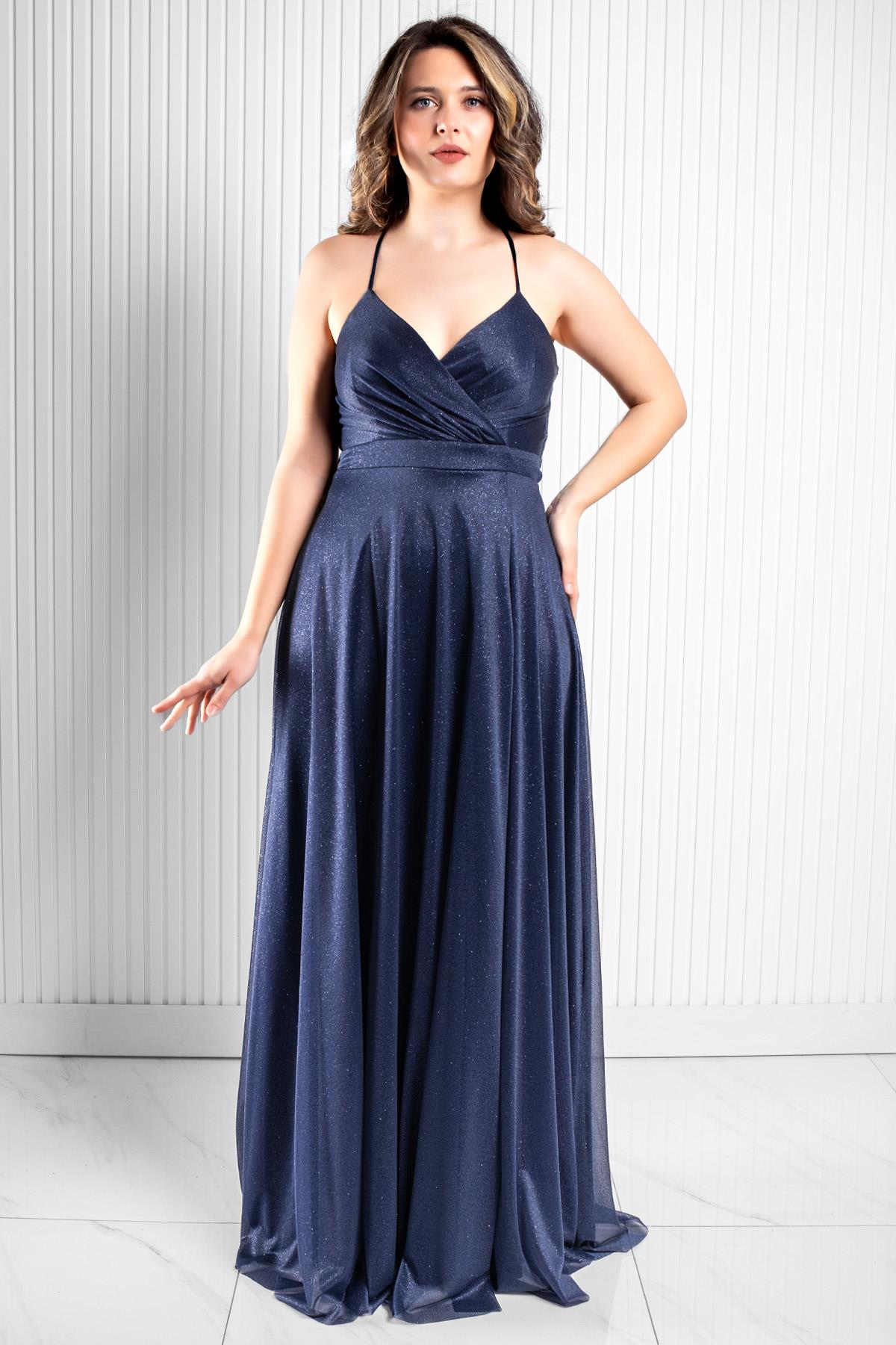 Simli Tül Abiye Elbise Lacivert MDV366 (MDV366-LACİVERT)