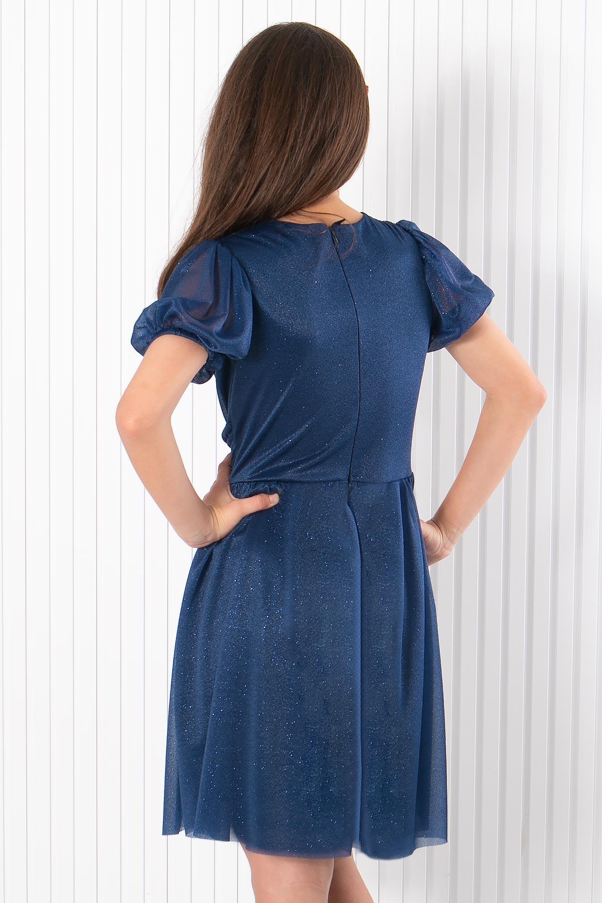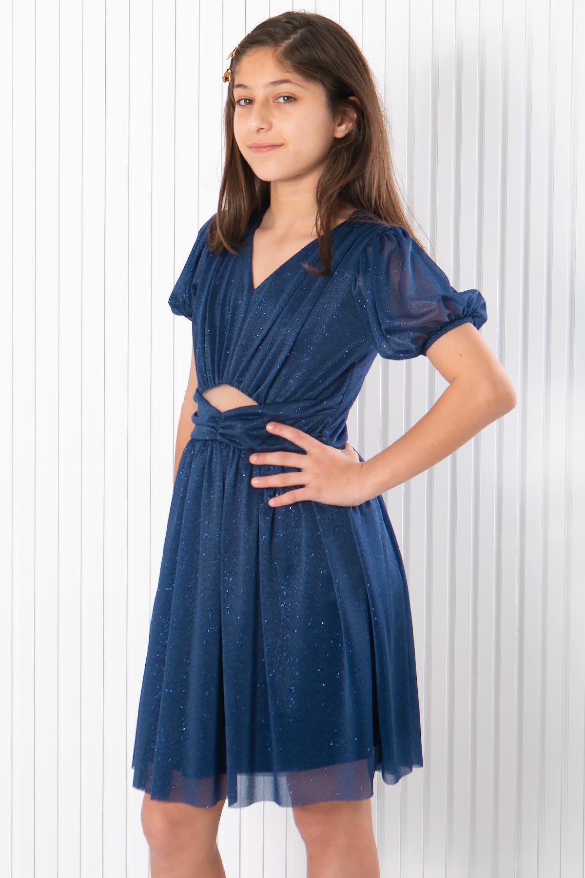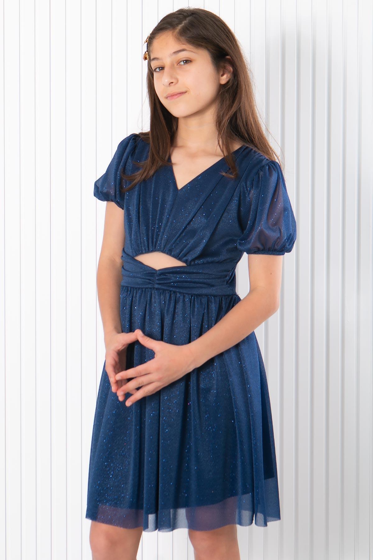 Balon Kol Simli Tül Abiye Elbise Lacivert MDV936 (MDV936-LACİVERT)