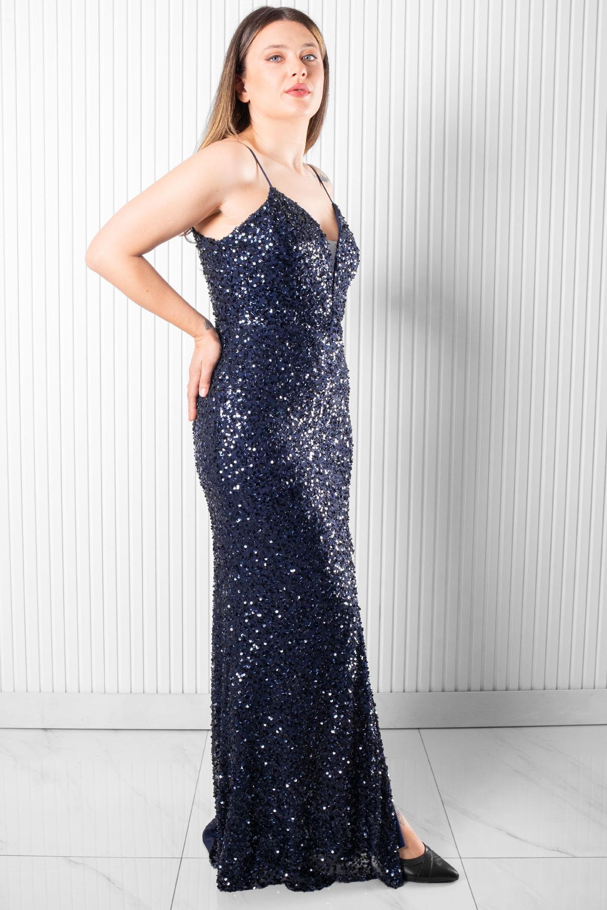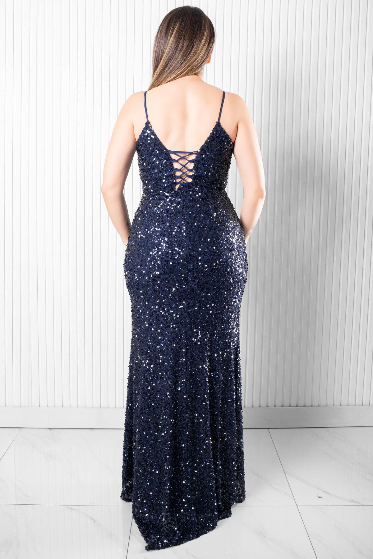 Sırt Bağlama Detaylı Abiye Elbise Lacivert MDV384 (MDV384-LACİVERT)